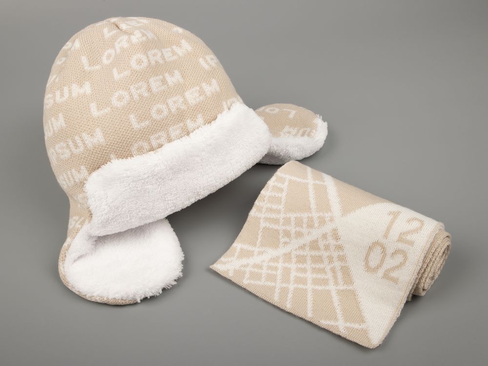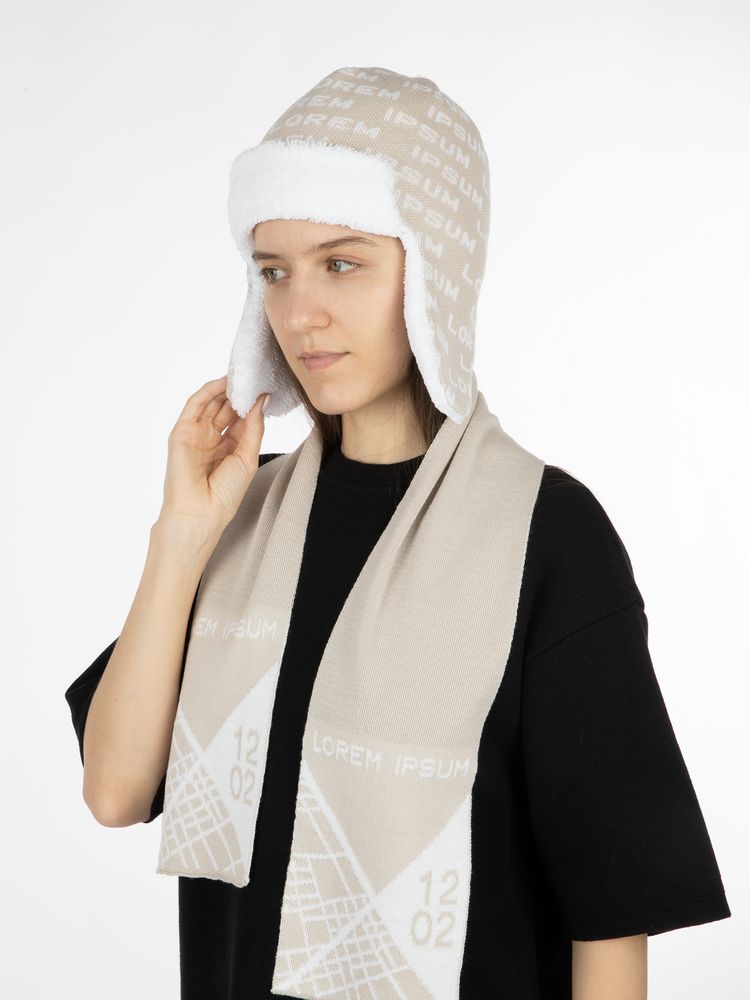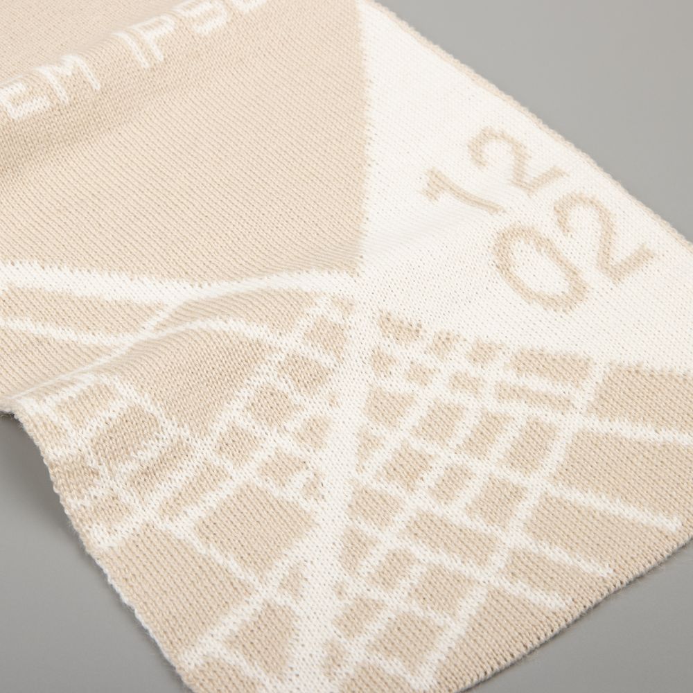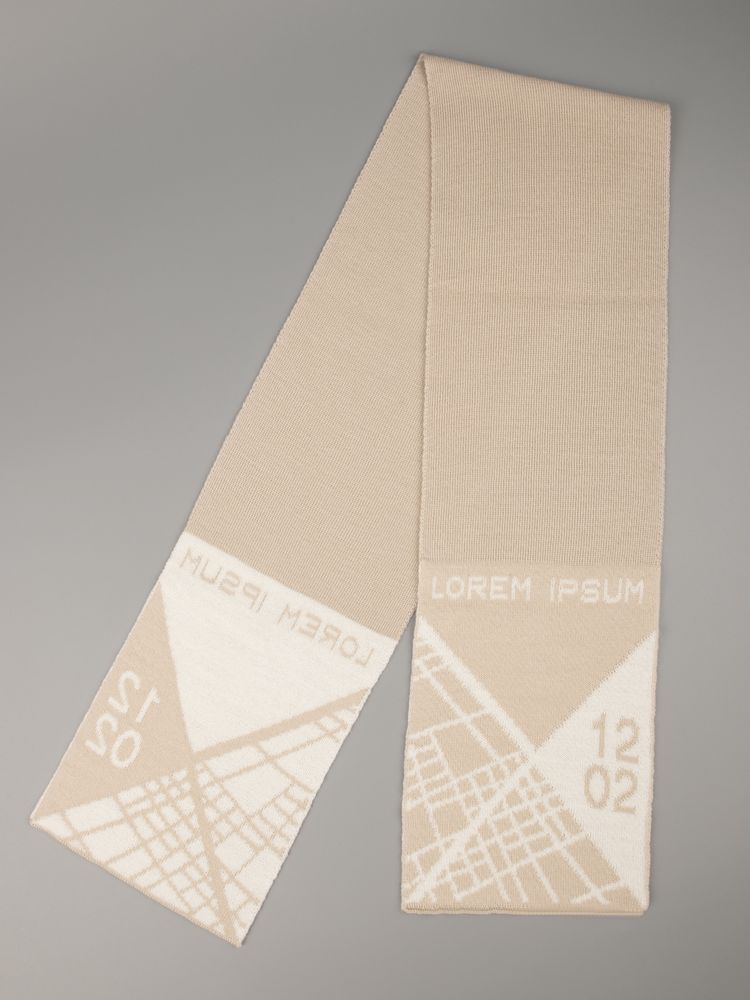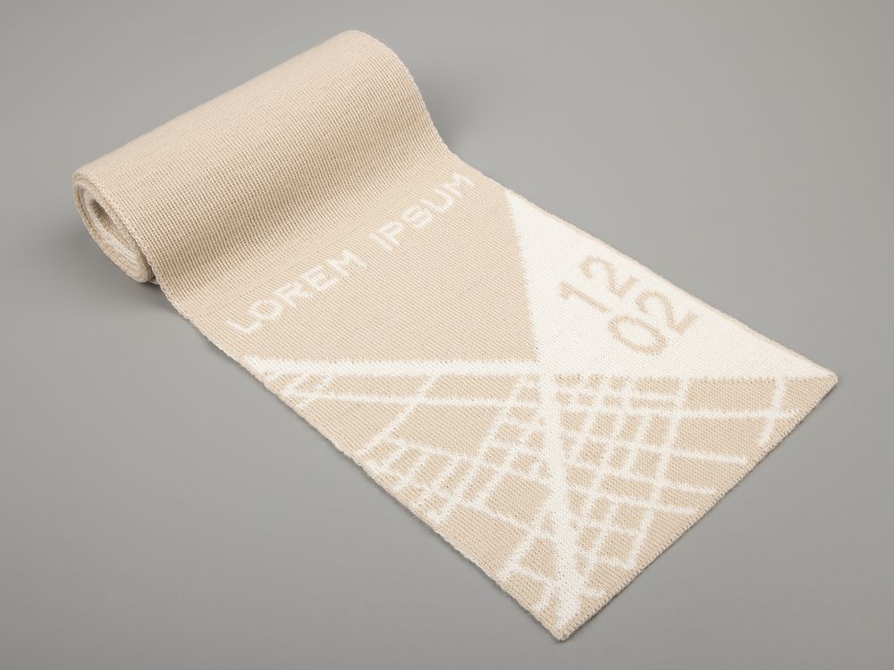Шарф с вывязанным логотипом и индивидуальным рисунком в фирменной цветовой гамме.