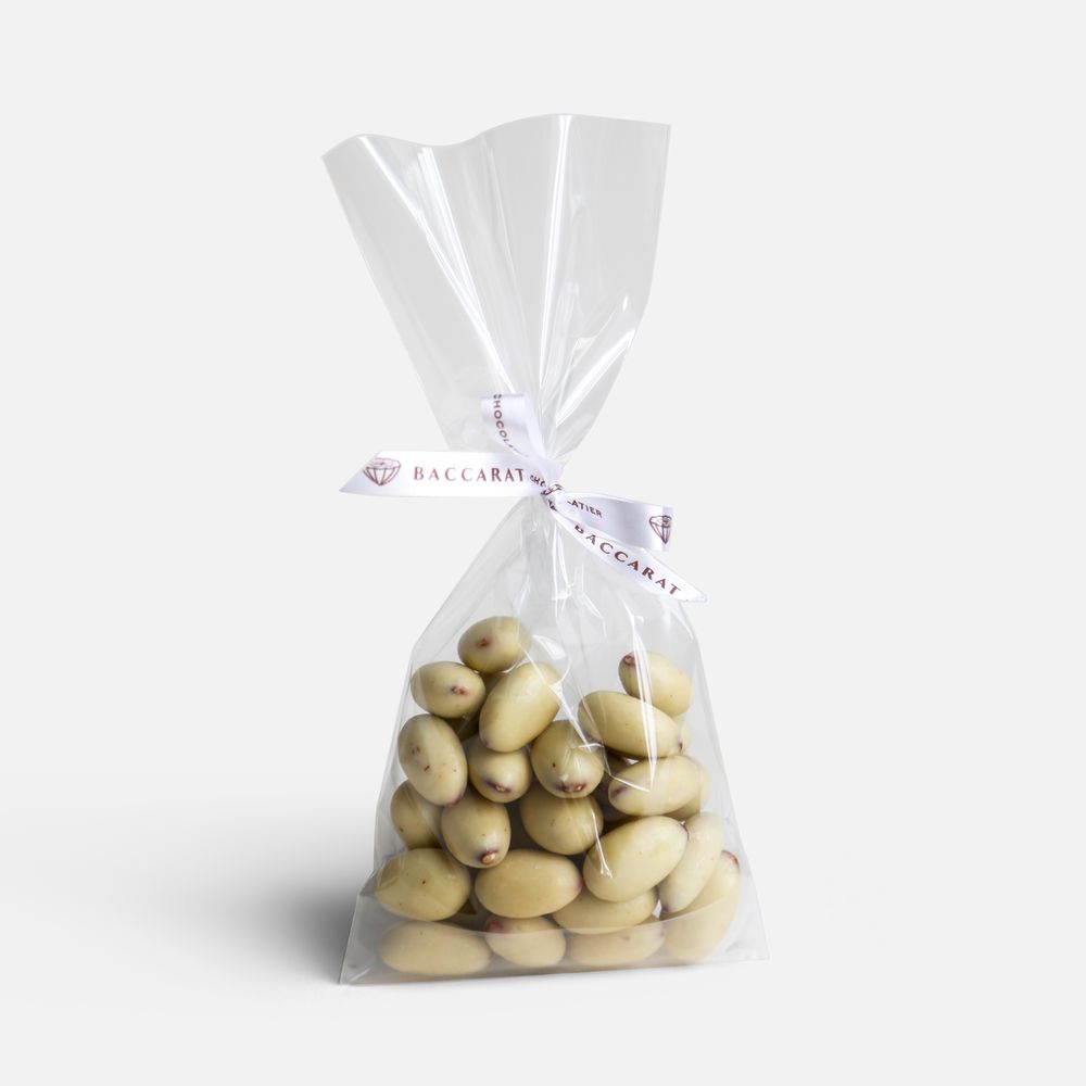 Цельный миндаль в хрустящей оболочке из темного бельгийского шоколада, дополненной бархатной обсыпкой из горького какао. Интенсивный шоколадный вкус с нотами горечи и насыщенная ореховая сердцевина — элегантное лакомство для ценителей.