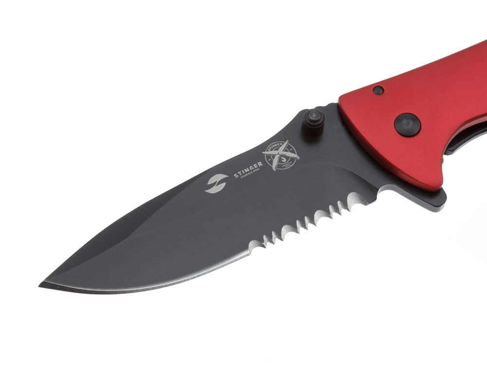 Особенности: лезвие с серрейторной кромкой, рукоять с клипом и отверстием под темляк