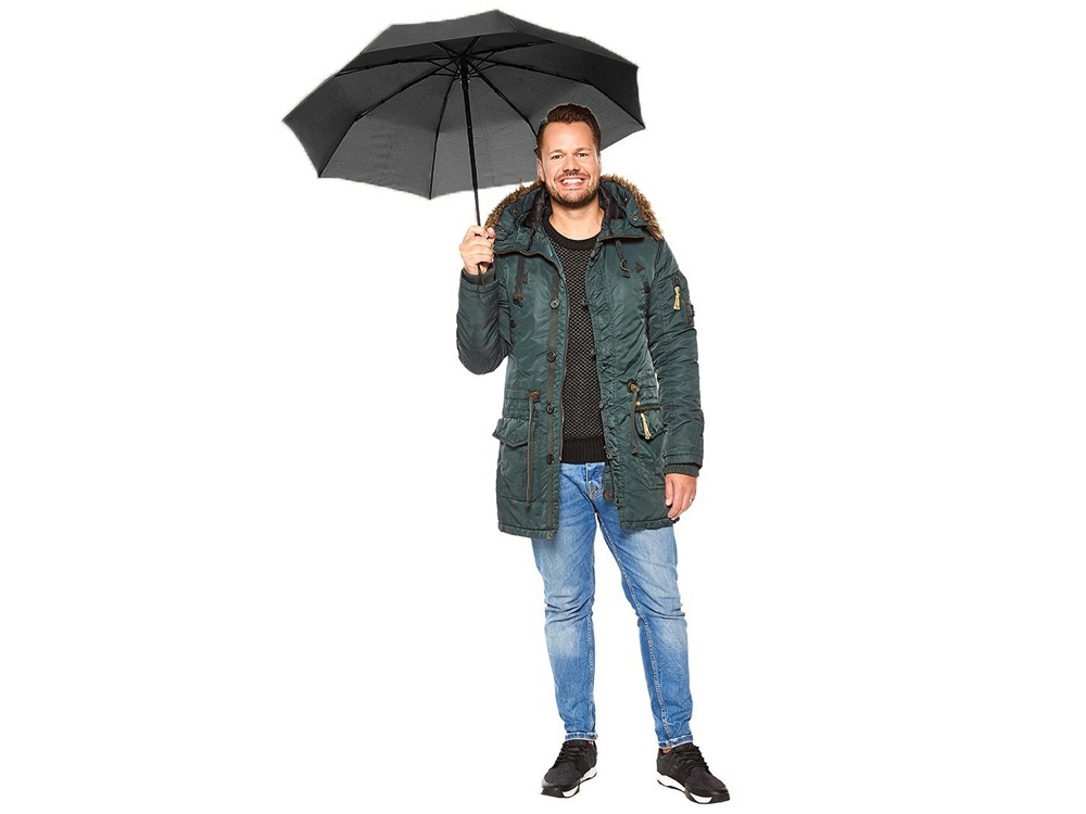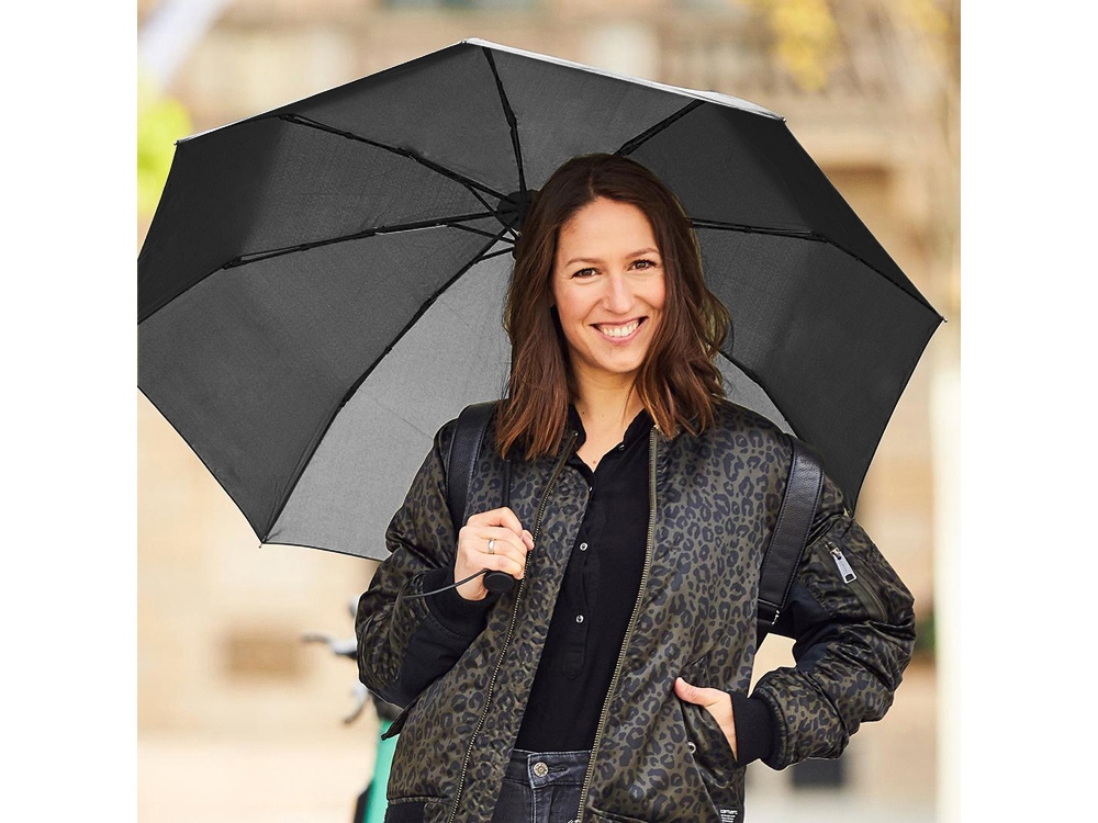 Добротный автоматический зонт с куполом из эпонжа и гибкими спицами из стекловолокна спасет от дождя и выстоит против порывов ветра. Чехол в комплекте -