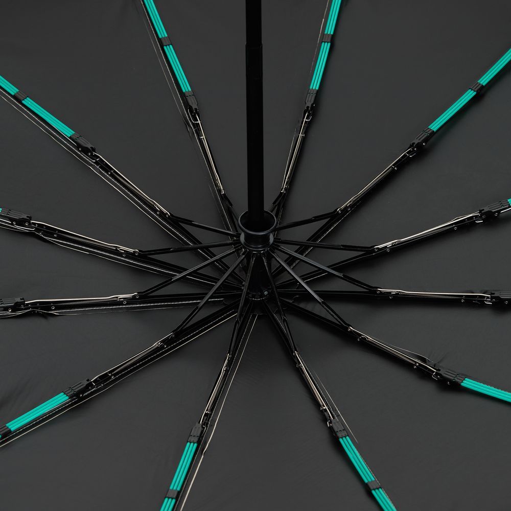 Зонт Ribstar отвечает абсолютной устойчивостью на любую непогоду. 12 усиленных тройных спиц — это не просто каркас, а целая инженерная система, которая противостоит шквальному ветру. УФ-покрытие на внутренней стороне купола позволяет использовать зонт не только во время дождя, но и под палящим солнцем.