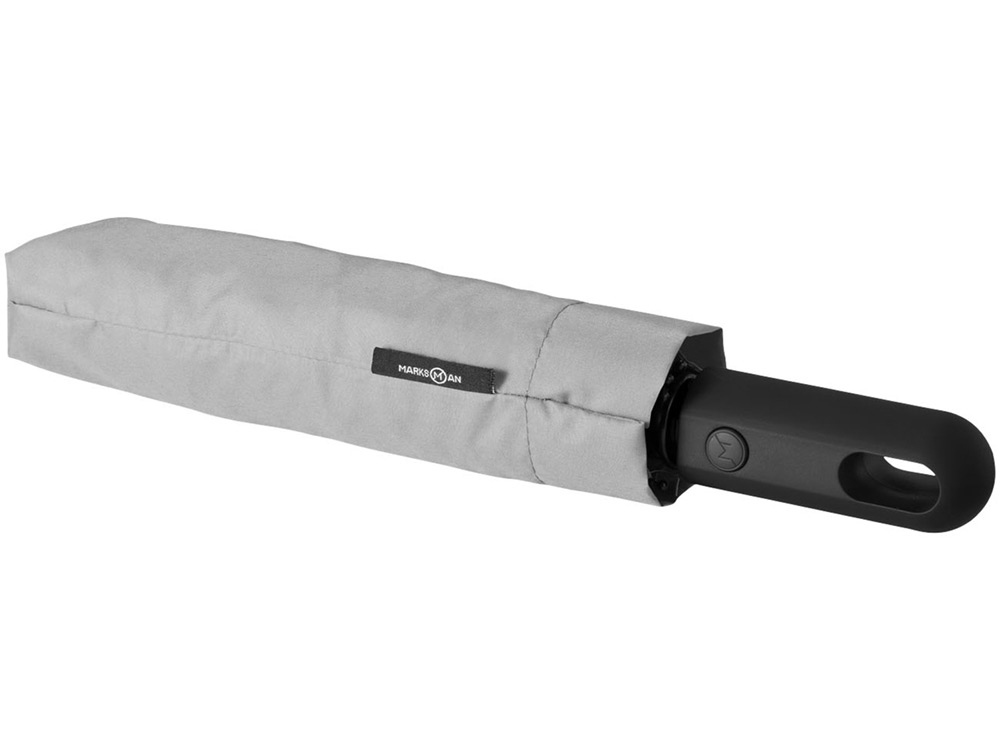 Эксклюзивный автоматически открывающийся и закрывающийся зонт в три сложения. Черная металлическая трость, стекловолоконные спицы и пластиковая прорезиненная ручка. Предлагается в чехле под цвет зонта. Длина зонта в сложенном виде: 31 см. Эпонж полиэстер. -