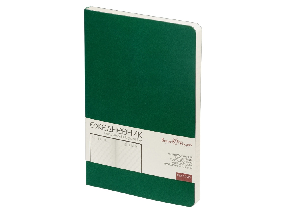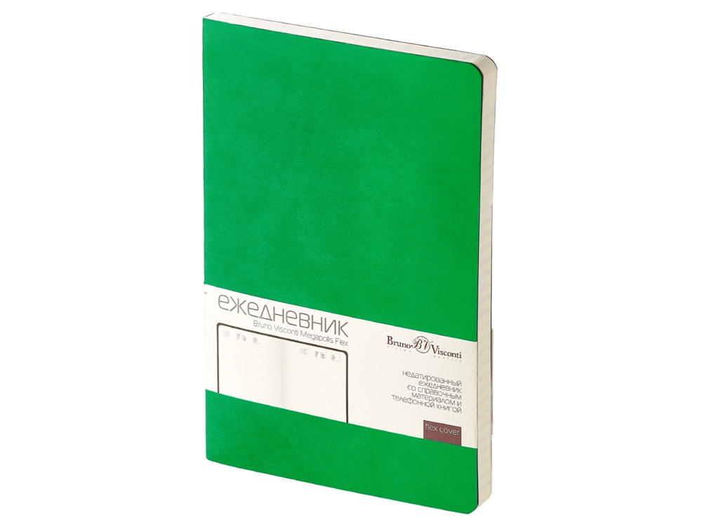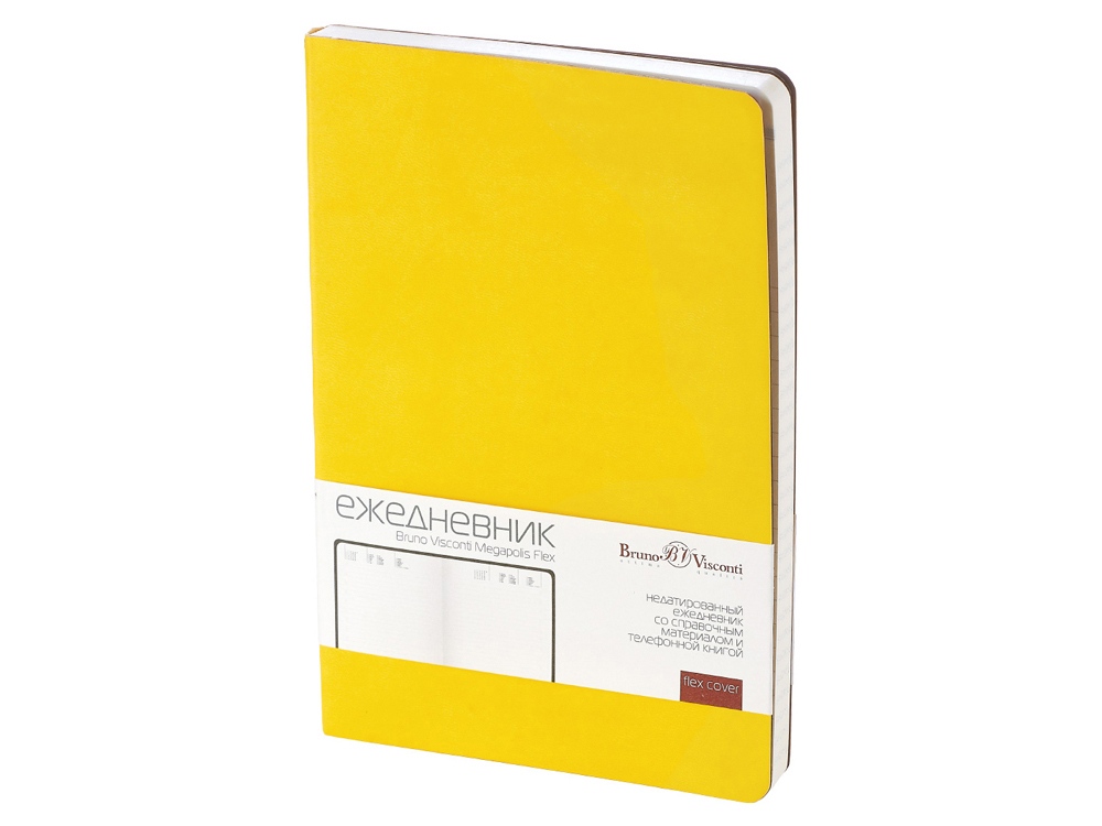 Недатированный ежедневник Megapolis Flex от бренда Bruno Visconti - это качественный корпоративный подарок по выгодной цене, произведенный специально под персонализацию. Представлен в универсальном формате А5 и состоит из 272 страниц. Элегантная закругленная flex обложка из гладкого кожзама имеет гибкую конструкцию и приятна на ощупь. А интегральный переплет позволяет сэкономить место в деловой сумке или портфеле – ежедневник можно просто свернуть в трубку или согнуть пополам.