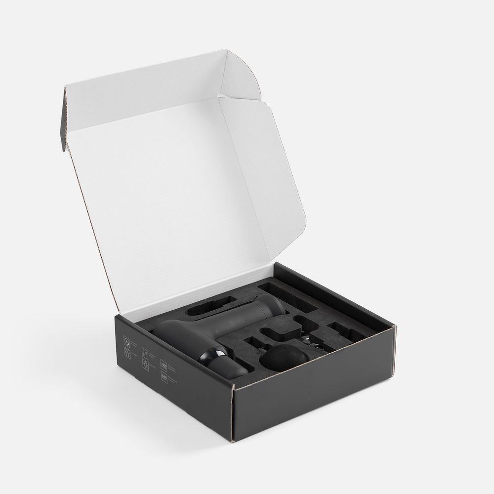 Конструкция массажера выполнена в форме мини-пистолета с тактильно приятным матовыми покрытием и эргономичной ручкой: его удобно держать и просто использовать благодаря кнопочной системе управления.