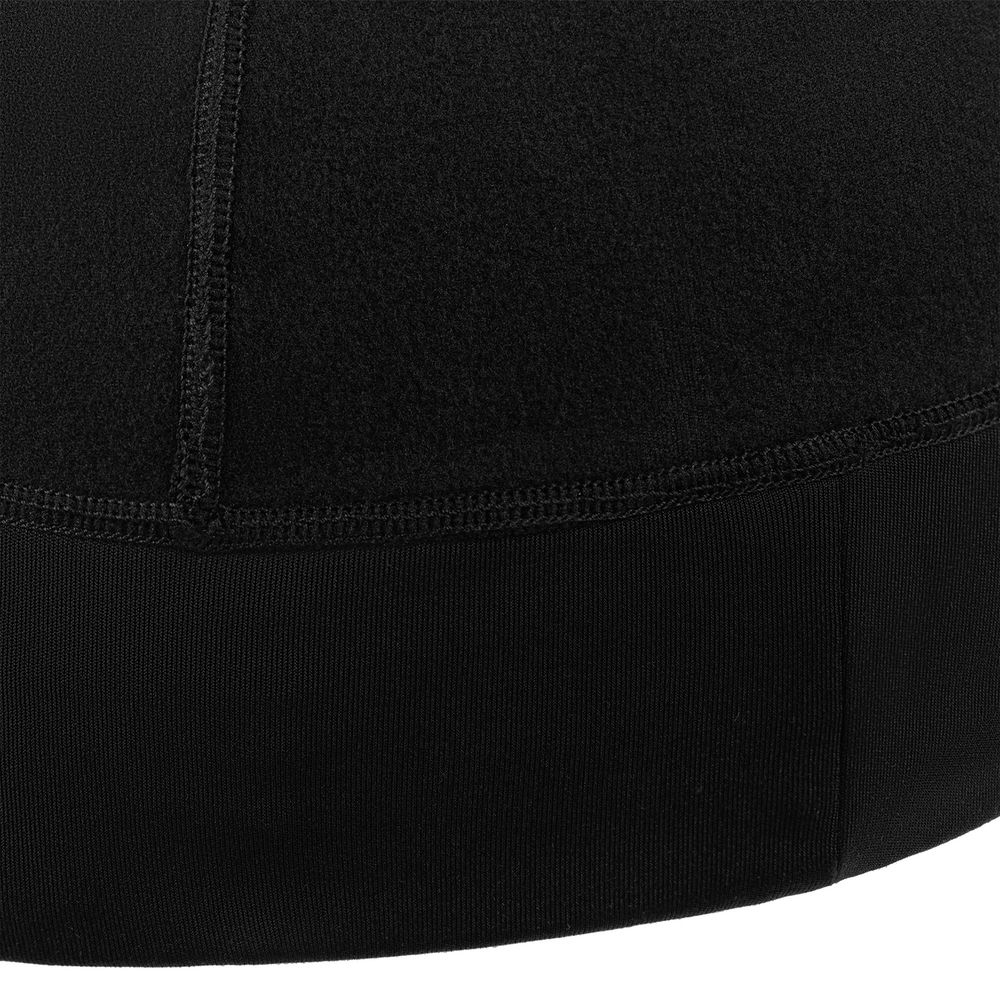 Шапка выполнена в черном цвете, но имеет светоотражающую полосу вдоль края, что улучшает видимость спортсмена в условиях плохой освещенности.