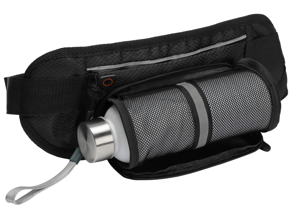 Благодаря светоотражающей полосе сумка сделает вас видимым для водителей в темноте. Во внешнем кармане прячется сетчатое отделение, предназначенное специально для бутылки с водой. При желании в этом кармане можно хранить и другие предметы, ключи или даже телефон. Бутылка не входит в комплект.