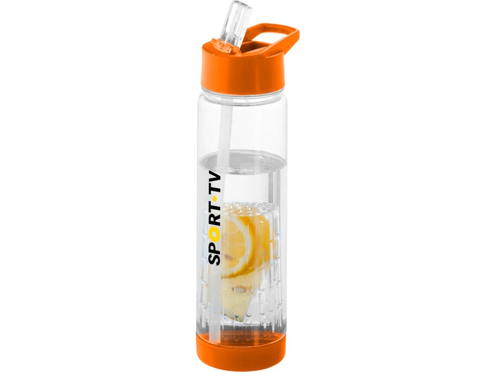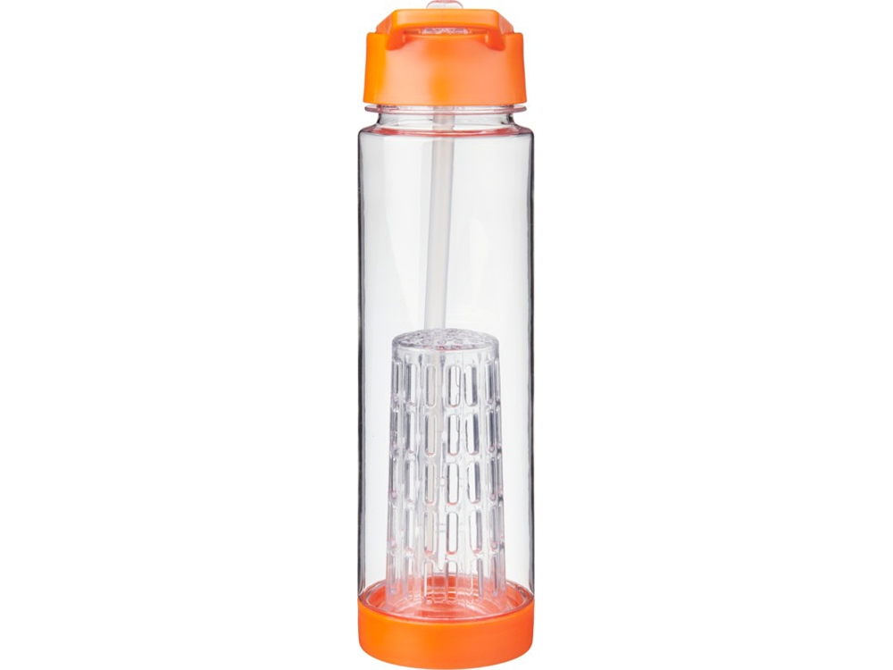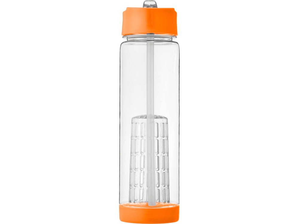 Оригинальная бутылка для воды. Благодаря отделению для фруктов есть возможность создания лимонада на свой вкус. Придется по вкусу любителям натуральных продуктов и здорового образа жизни. Легко разбирается. На пластиковый корпус возможно нанесение тампопечати. Объем – 740 мл. -