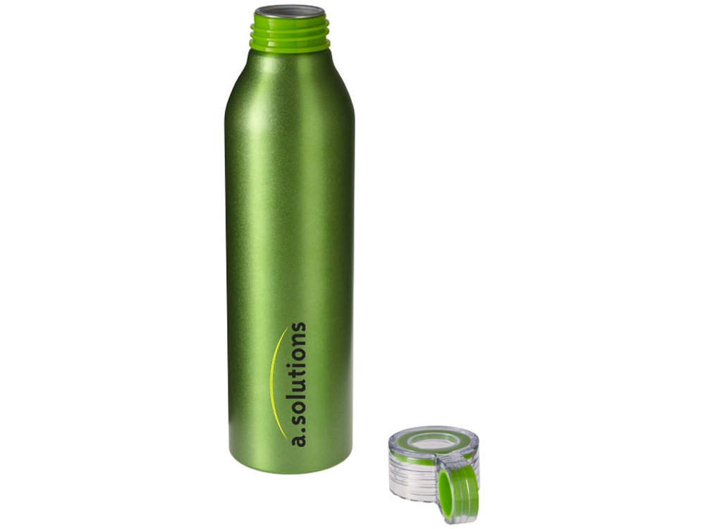 Спортивная алюминиевая бутылка Grom. Одинарные стенки. Откручивающаяся крышка с защитой от протекания и цветным акцентом. Удобная в пути. Объем 650 мл. Алюминий.