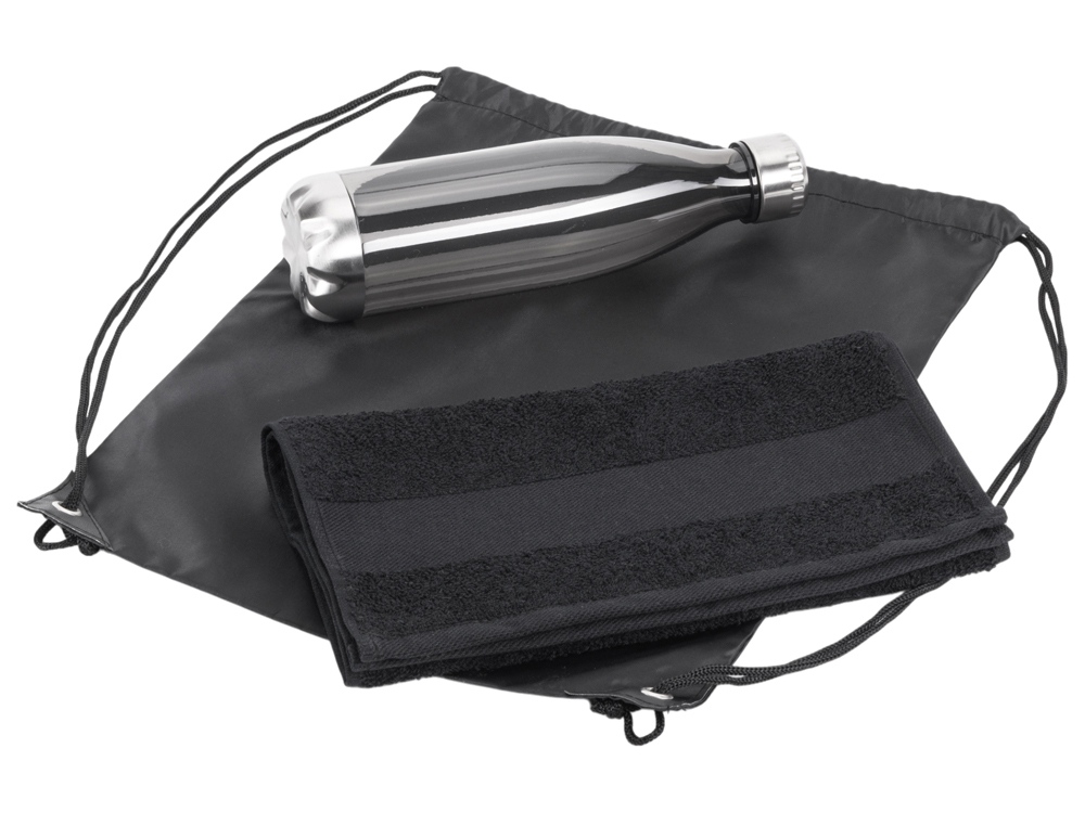 Универсальный спортивный набор будет актуален в любом виде спорта. Бутылка для воды позволит брать с собой не только воду, но и тонизирующие напитки или коктейли и поможет освежиться в любой момент. Тритан, из которого изготовлена бутылка, не искажает вкус и запах напитков, являясь абсолютно безопасным для человека.