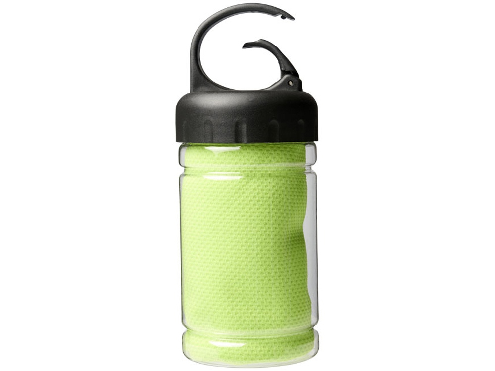 Охлаждающее полотенце Remy в ПЭТ-контейнере. Быстро впитывающее, быстро сохнущее и стираемое охлаждающее полотенце сохраняет прохладу во время тренировок или любых других занятий на свежем воздухе. Поставляется в ПЭТ-контейнере с ручкой и встроенным карабином для удобной переноски. Доступно в 5 ярких цветах. На контейнере изображен большой логотип, он также может быть и на самом охлаждающем полотенце. Размер: 30 x 80 см. PET. 0,096. -