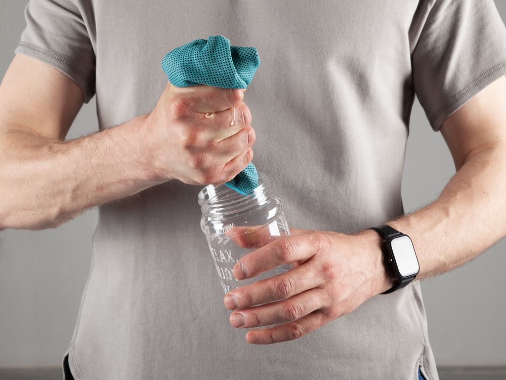Для получения охлаждающего эффекта намочите полотенце, отожмите излишки воды и встряхните. Положите полотенце на шею, лоб или запястье, убедившись, что ткань покрывает кожу. Влага, испаряясь из полотенца, оказывает охлаждающее воздействие на кожу, обеспечивая мгновенное облегчение.