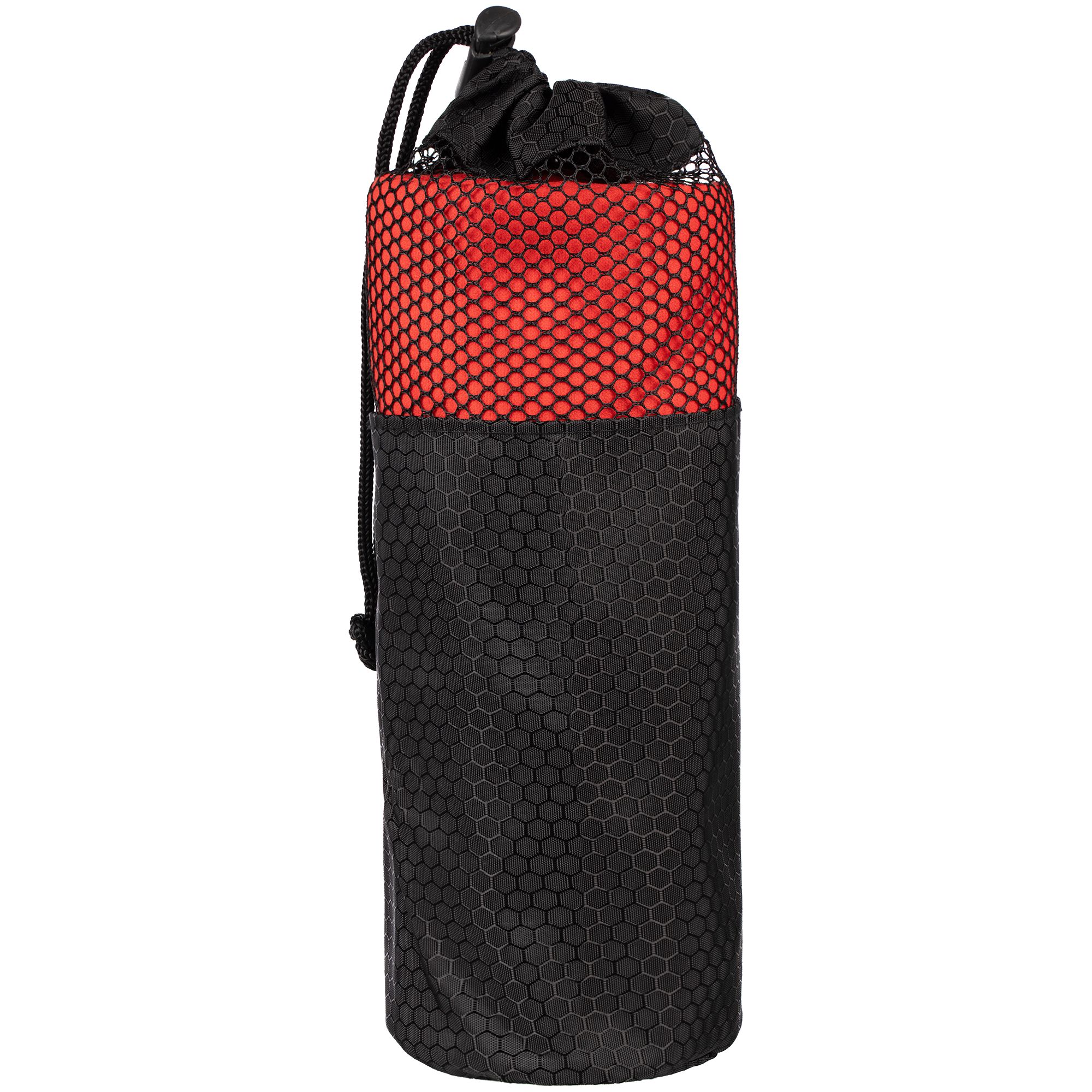 Полотенце упаковано в сумку-чехол из прочной ткани с плетением рипстоп и дышащим сетчатым верхом. Чехол также можно использовать в качестве несессера для косметических и купальных принадлежностей.