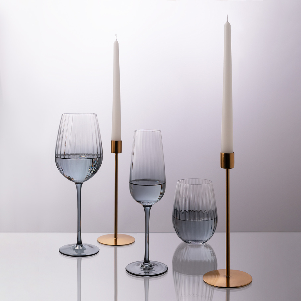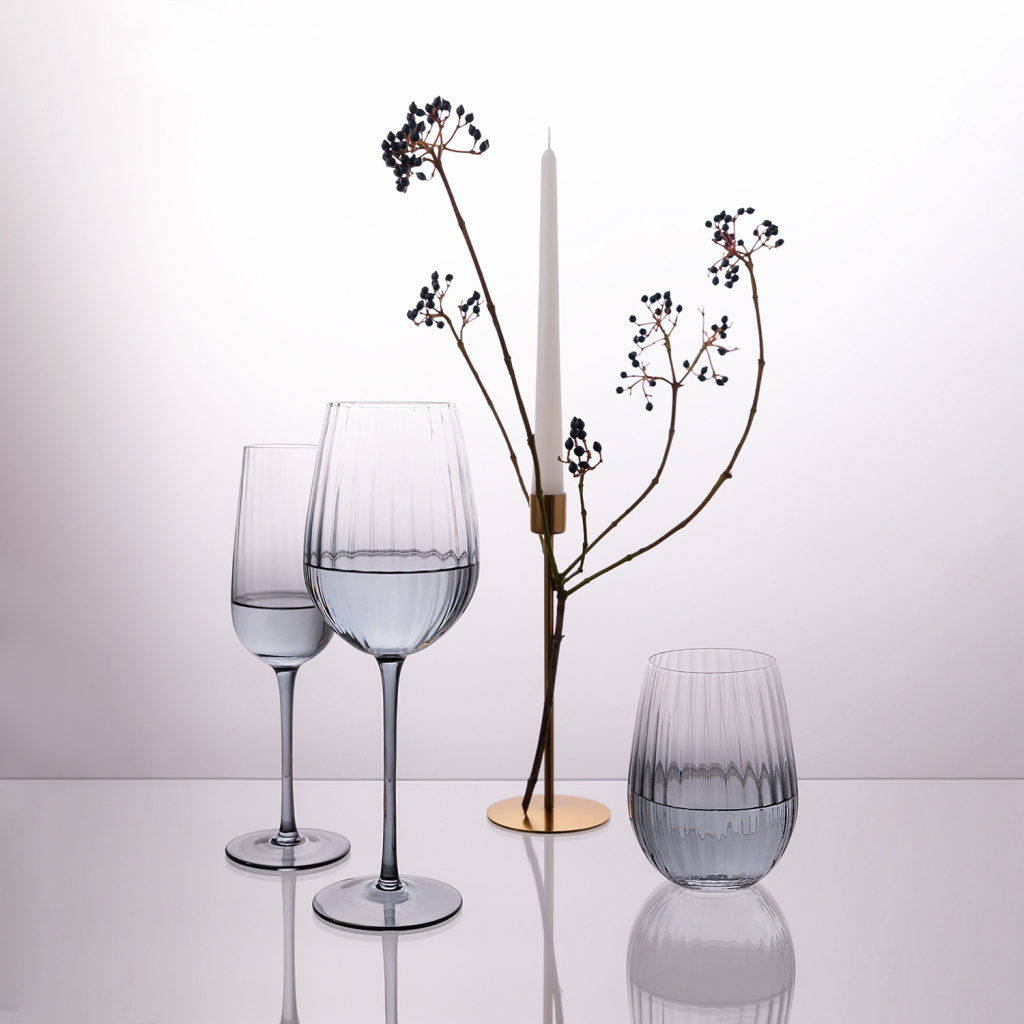 Секрет в уникальном рифлении, создающем игру света и тени, которая превращает дегустацию в искусство. Утонченный дизайн гармонично сочетается с любой сервировкой, от классической до современной. Создайте свой безупречный набор, дополнив его бокалами для шампанского и стаканами для воды.