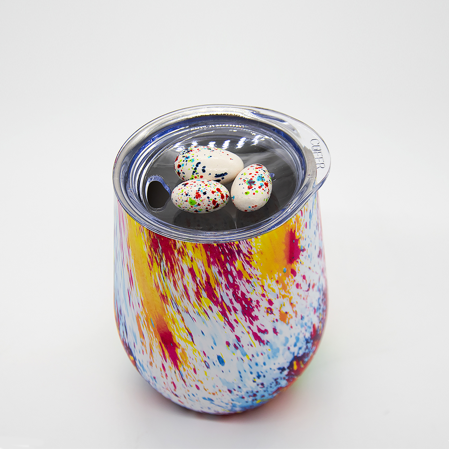 Характерная обтекаемая форма с расширяющейся нижней частью придает коферу оригинальность. Благодаря этой форме, кофер можно использовать для любых напитков: вода, чай, кофе, вино, коктейли - наливайте в кофер все, что захотите, напиток надолго сохранит свою температуру и вкус.