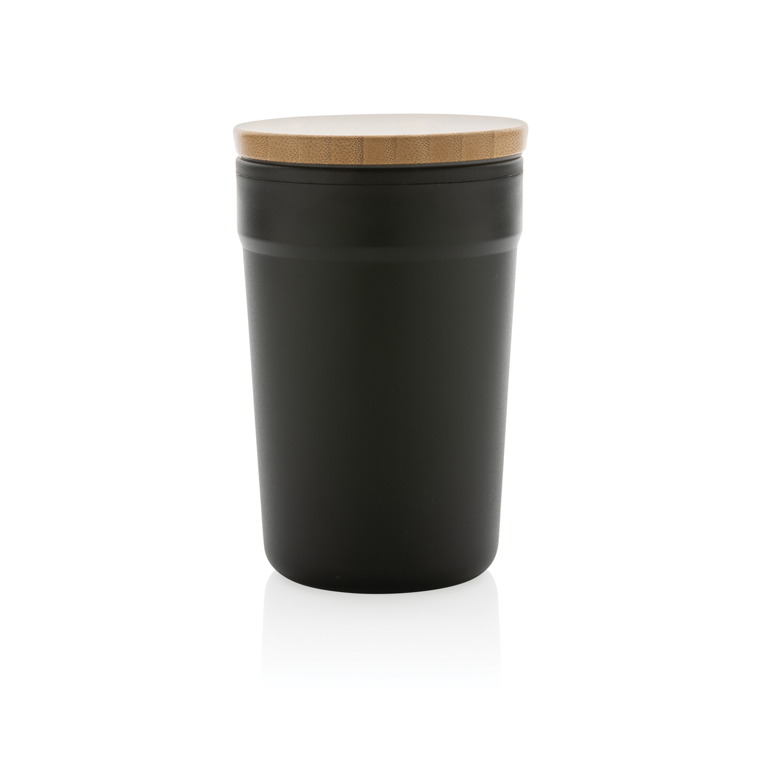 Стакан из переработанного полипропилена GRS с бамбуковой крышкой, 300 мл
