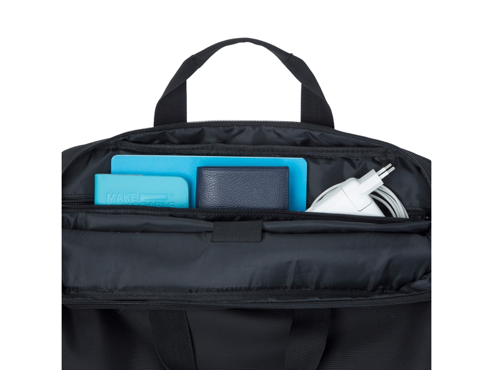 • Сумка выполнена из плотного синтетического материала и имеет утолщенные стенки для лучшей защиты ноутбука от случайных ударов и царапин, а также от пыли и влаги.