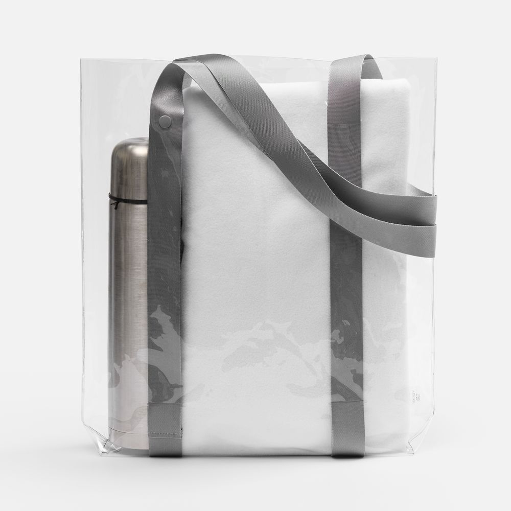 Прозрачные сумки никогда не выйдут из моды. А цветные ручки легко впишутся в брендбук и точно передадут настроение, которое хотелось бы транслировать.