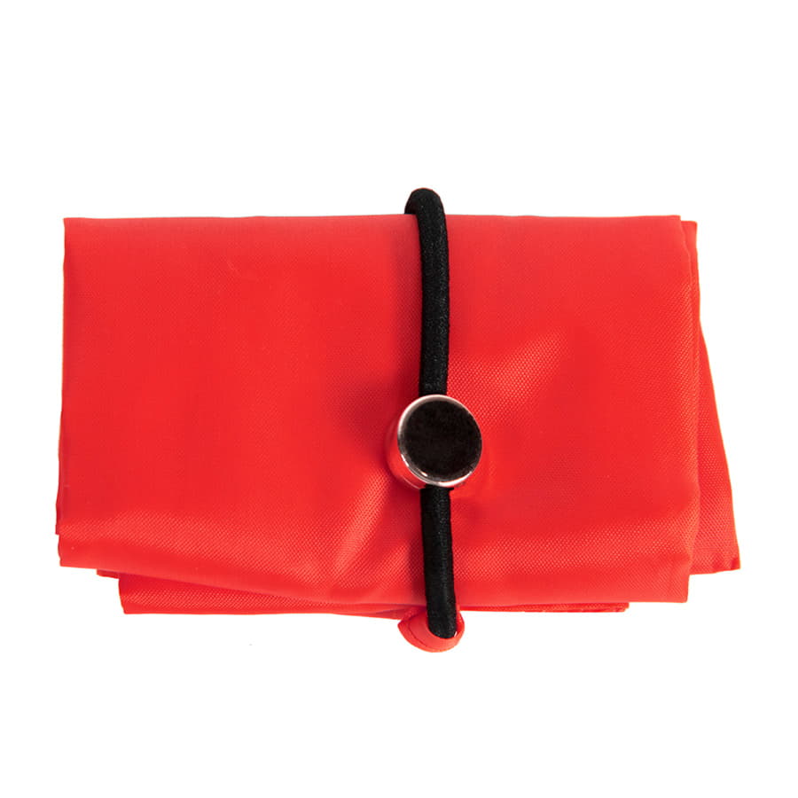 Цвет, близкий к Pantone Red 185 C Легкая и практичная складная сумка для покупок из мягкого полиэстера 190Т. Удобно фиксируется прочной резинкой с пластиковым декором. Незаменимая маленькая помощница освободит ваши руки. Длинные ручки 52 см позволяют повесить сумку на плечо. -