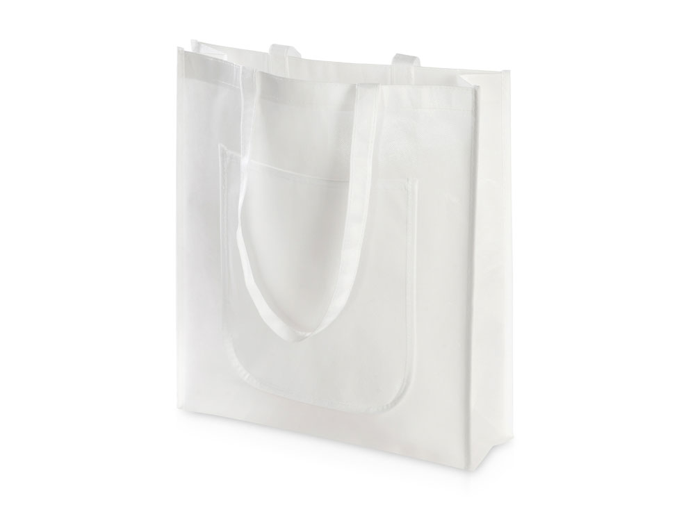 Большая вместительная и невесомая сумка с ламинированной поверхностью - всегда незаменимый помощник под рукой. Спереди расположен большой карман под ваш логотип. -