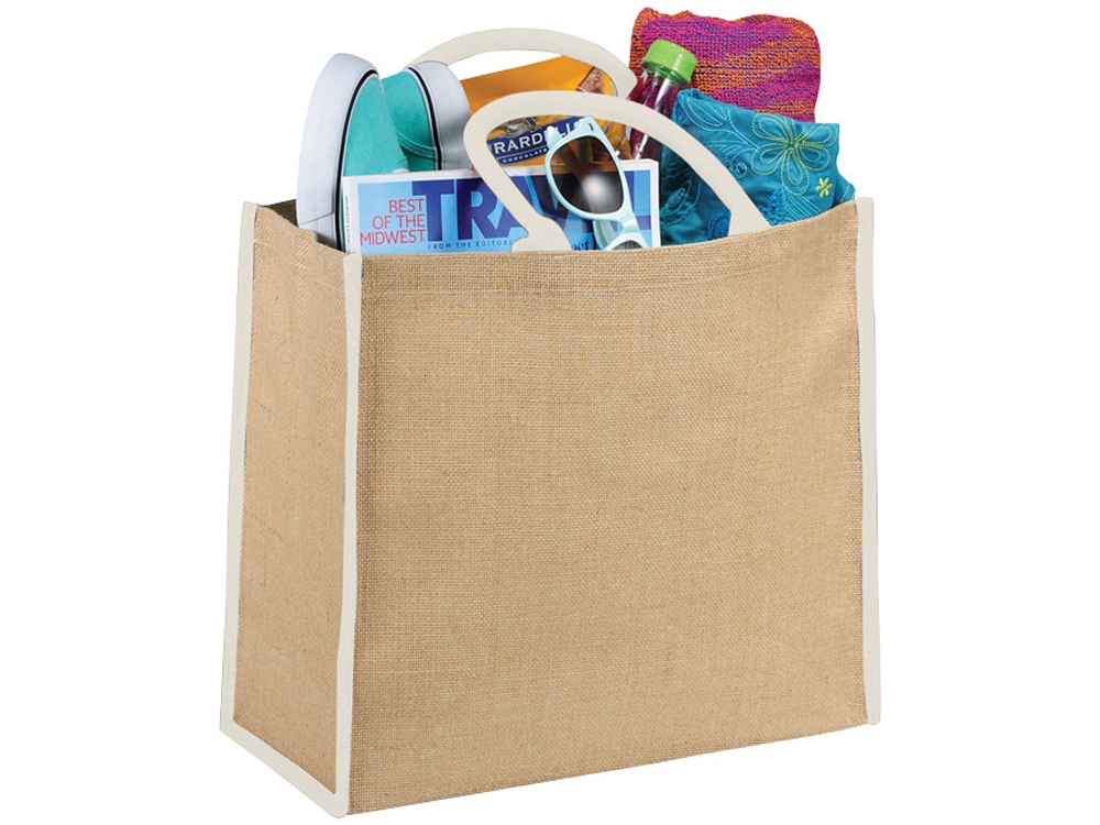 Сумка для покупок. Открытое основное отделение на липучке. Двойные ручки высотой 17 см. Джут. -