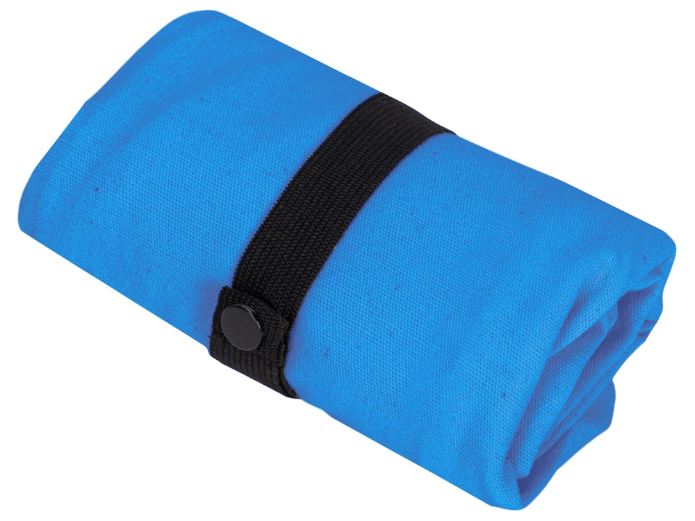 Удобная сумка-шоппер из переработанного хлопка. Можно хранить в сложенном виде и фиксировать с помощью эластичной ленты, застегивающейся на кнопку. -