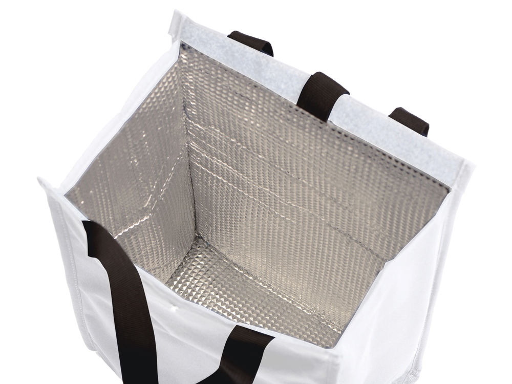 Вместительная сумка-холодильник, в том числе подходящая для винных бутылок. Внутренняя подкладка из пены толщиной 2 мм. Закрывается на плотную липучку. Складывается и застегивается на кнопку. Удобные прочные ручки для переноски. -