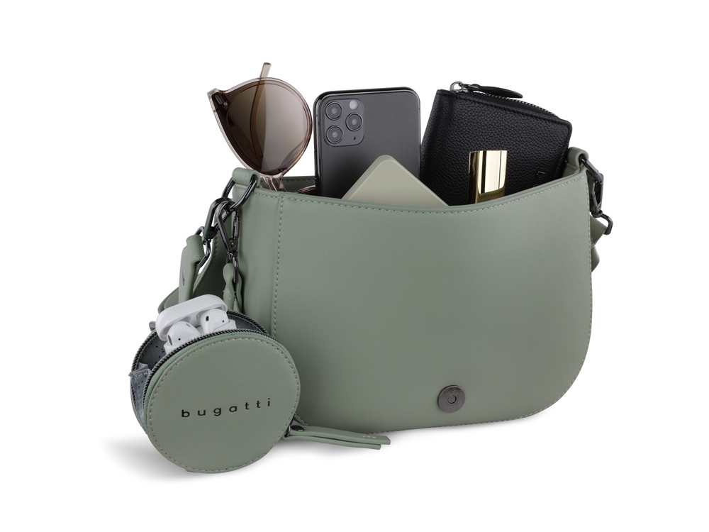 Внешняя организация: съёмный регулируемый плечевой ремень (до 50 см), съёмный регулируемый плечевой ремень (до 140 см) со съёмным кошельком на молнии