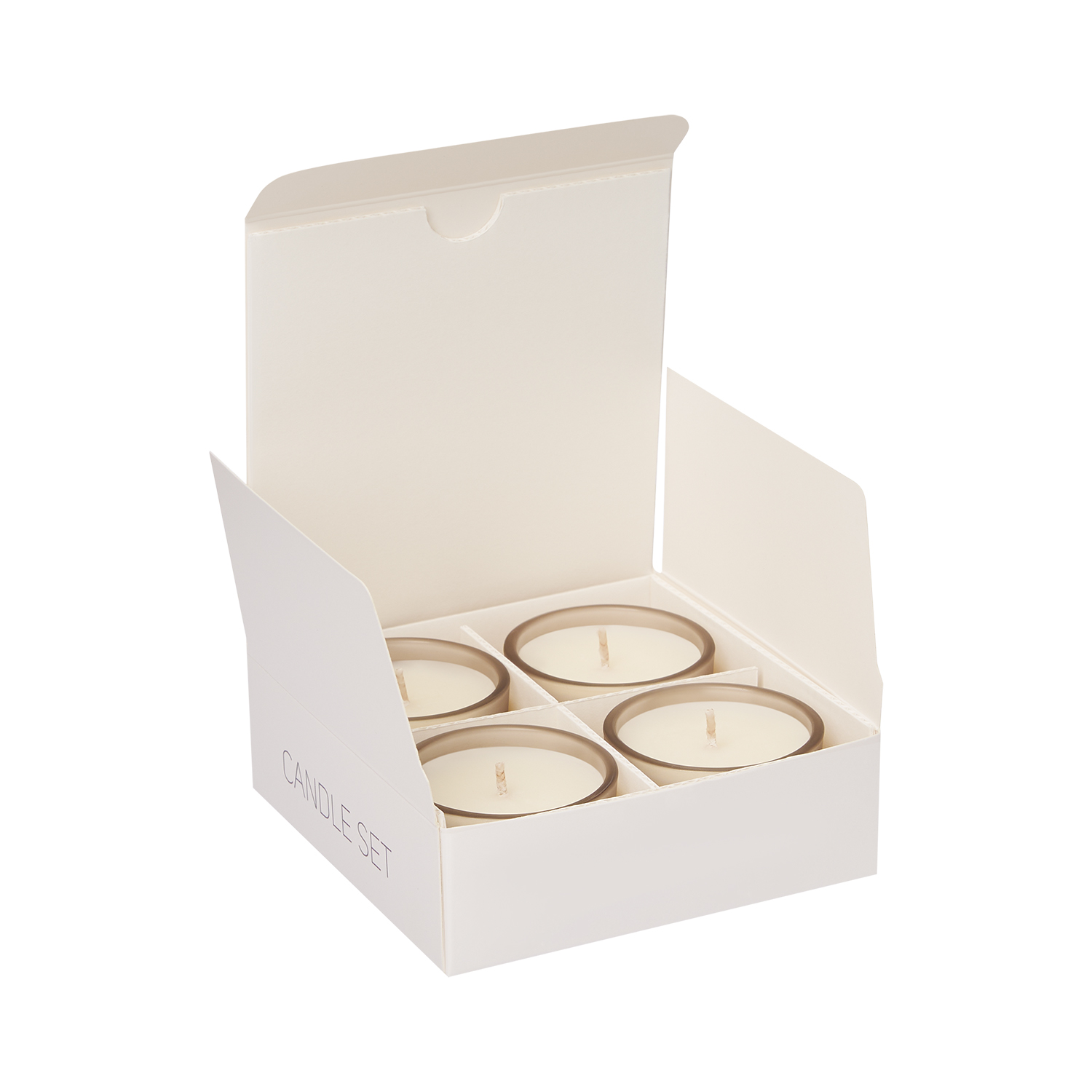 Состав набора: 4 свечи в стеклянных подсвечниках.
