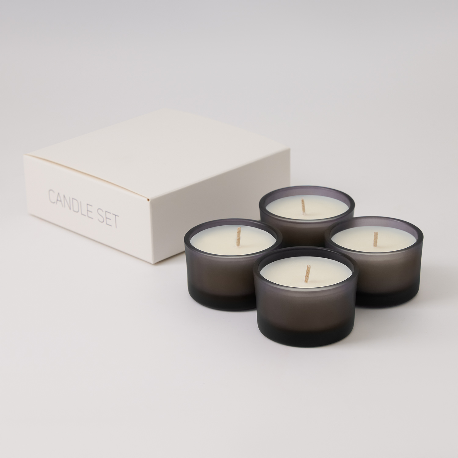Состав набора: 4 свечи в стеклянных подсвечниках.