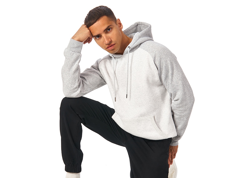 - Контрастный рукав реглан и капюшон.