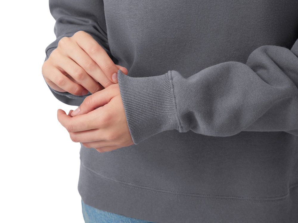 - резинка по горловине, рукаву и низу свитшота для комфортной посадки