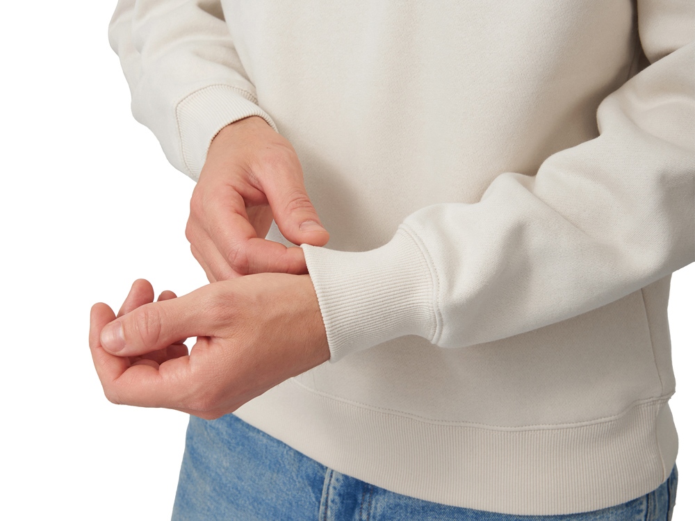 - резинка по горловине, рукаву и низу свитшота для комфортной посадки