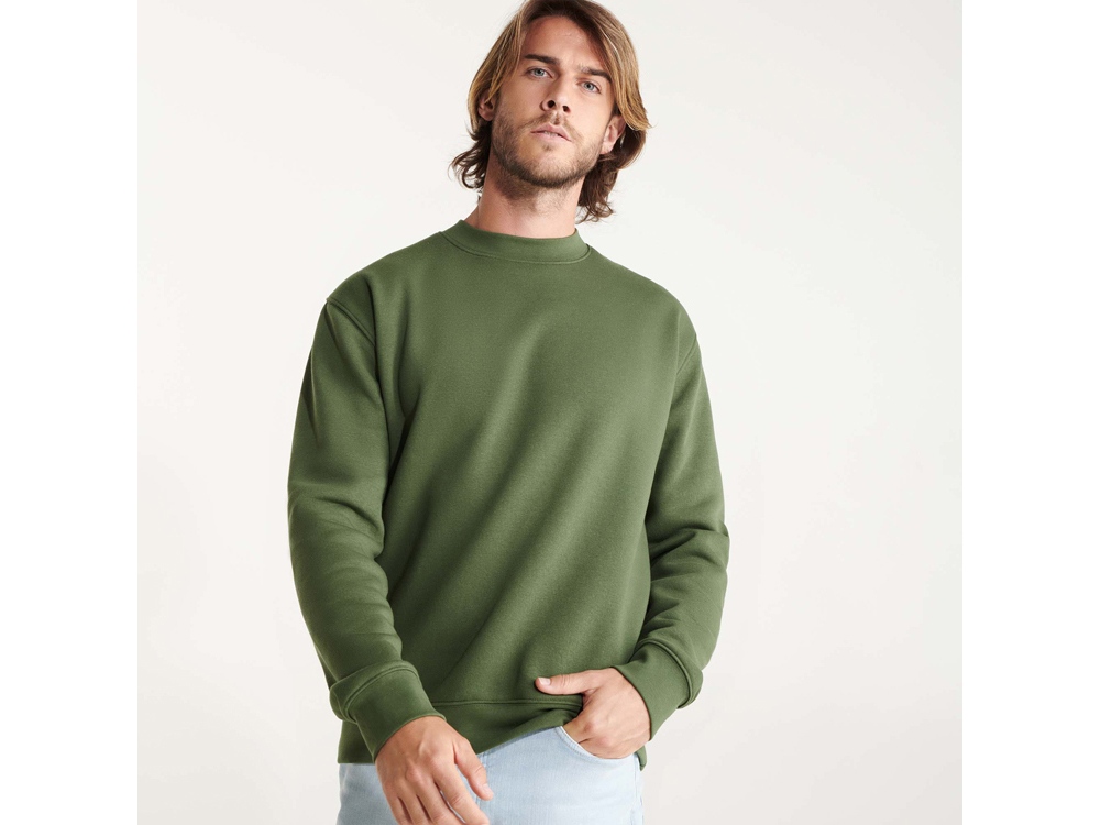 Классическая толстовка свитшот с эластичным рибом 1x1 на воротнике, манжетах и низу изделия. Шов горловины укреплен изнутри тесьмой. -