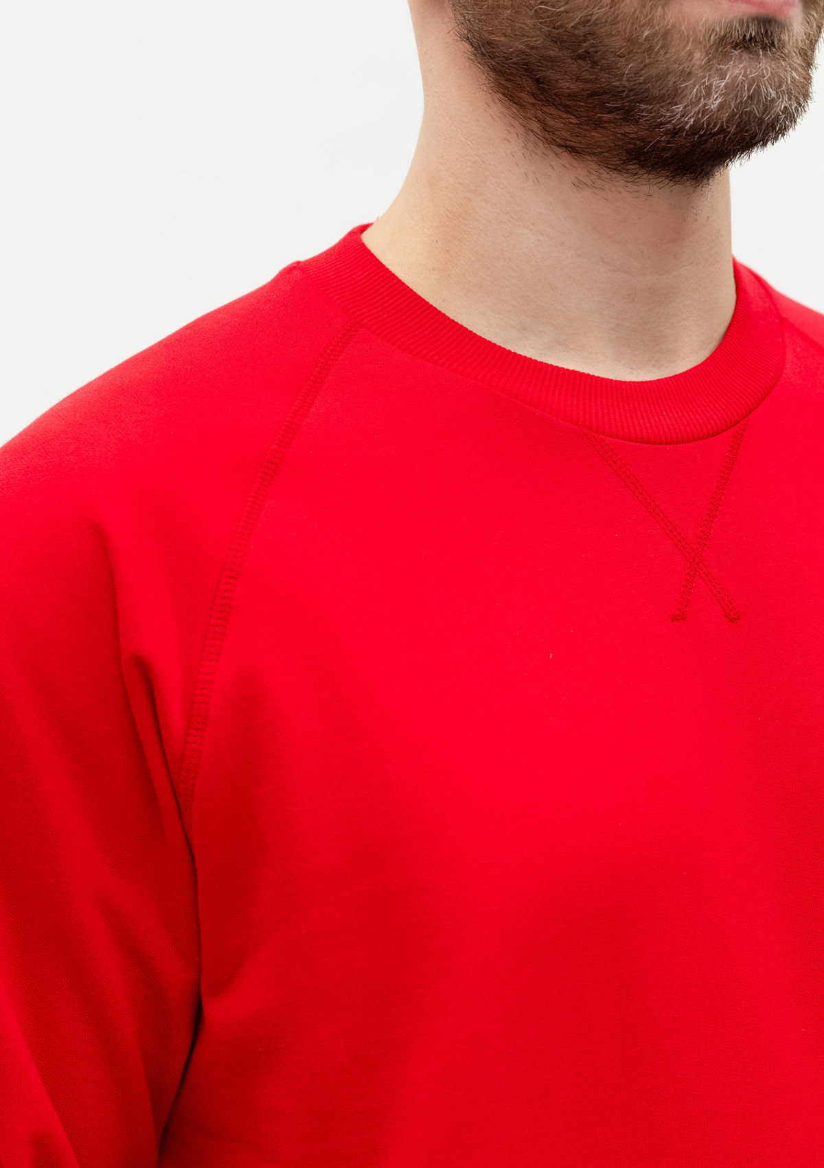 Модель выполнена из плотного хлопкового футера, который хорошо удерживает тепло, обеспечивая комфорт в прохладную погоду. Материал устойчив к механическому воздействию и вытяжению, практически не поддается пилингу.