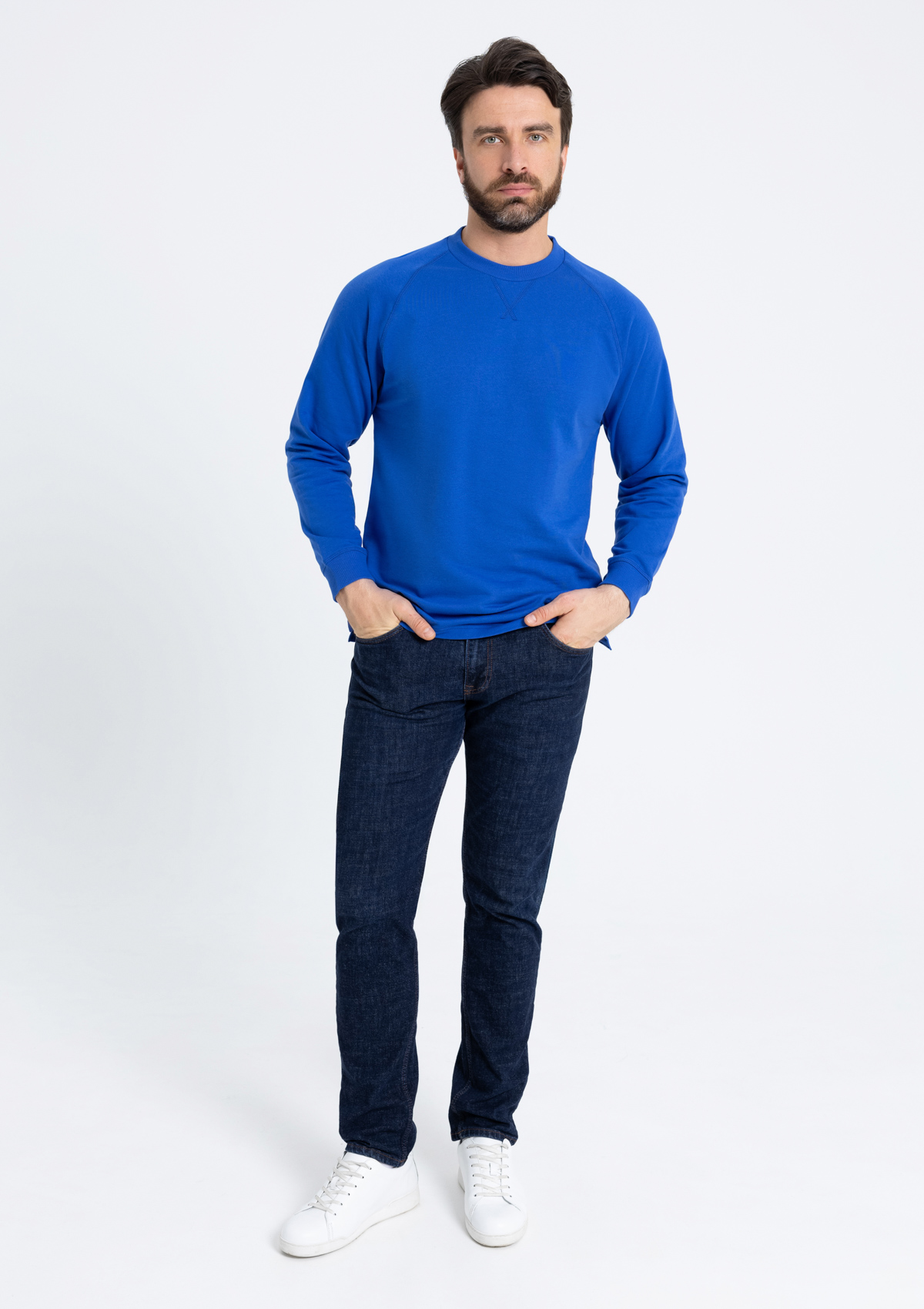 Модель выполнена из плотного хлопкового футера, который хорошо удерживает тепло, обеспечивая комфорт в прохладную погоду. Материал устойчив к механическому воздействию и вытяжению, практически не поддается пилингу.