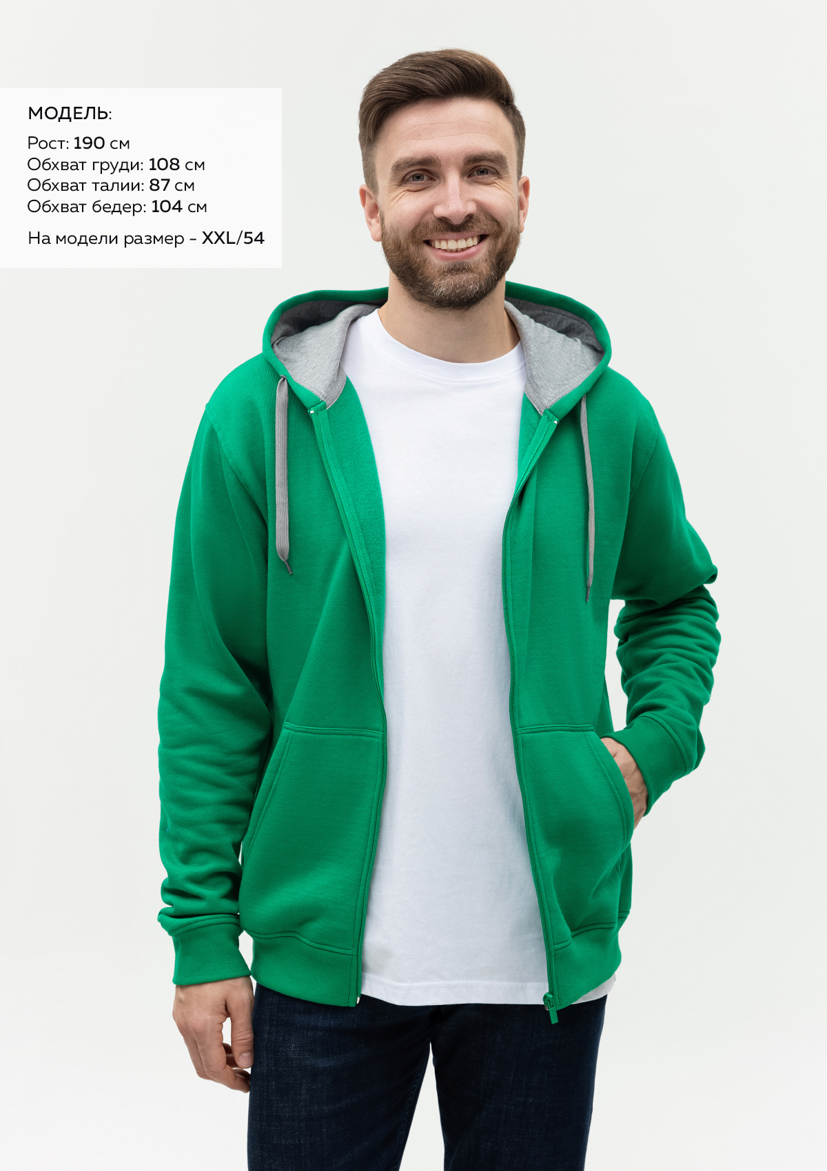 Размер мужского свитшота: XXL/54. Параметры модели: рост 190 см.; обхват груди 108 см.; обхват талии 87 см.; обхват бедер 104 см. -