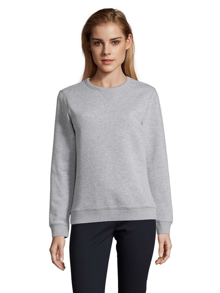 Женская утепленная толстовка с круглым вырезом и декоративной треугольной вставкой. Лейбл производителя в боковом шве изнутри, в шве горловины — только бирка с размером, что позволяет вам нанести свой логотип.- Внутренняя сторона с начесом