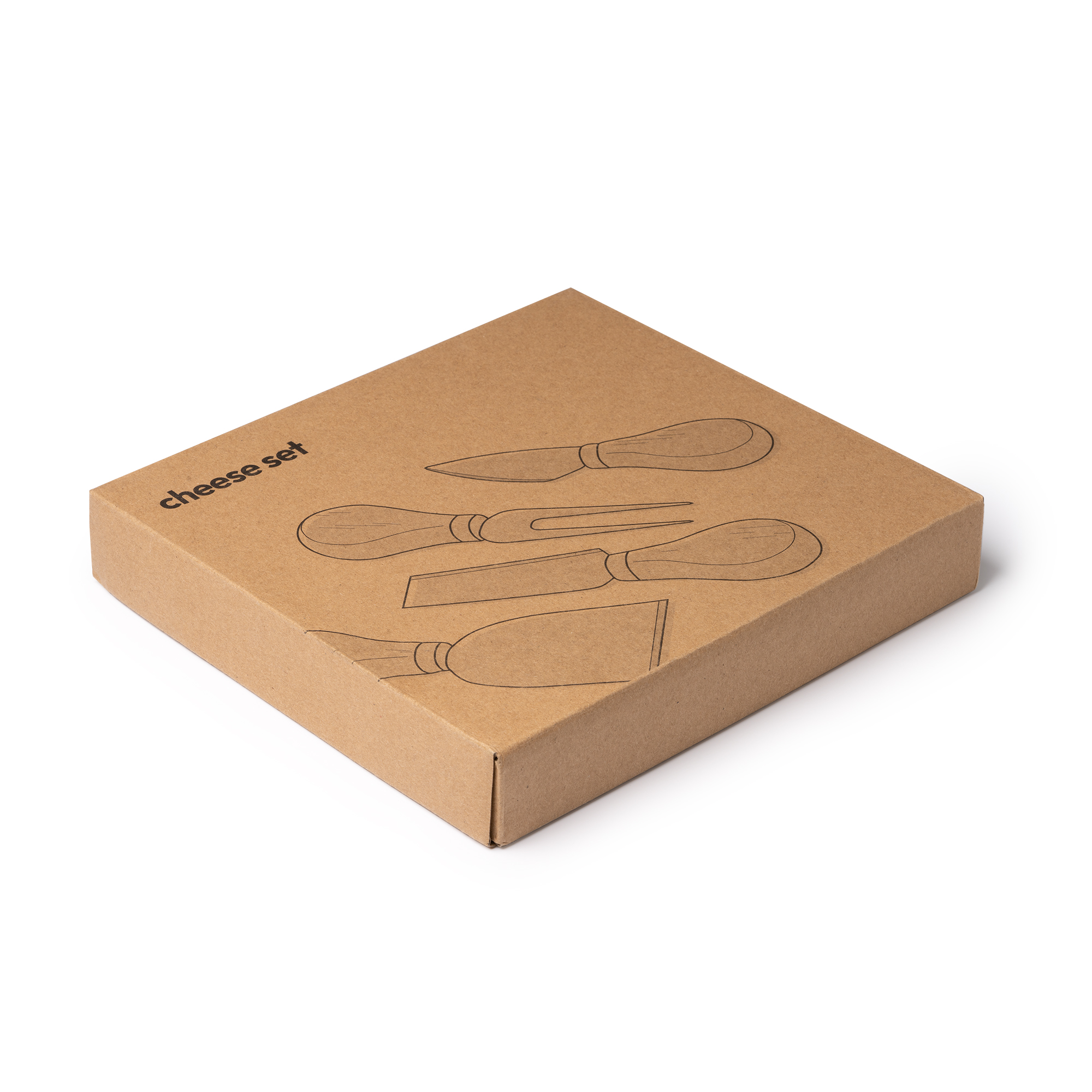 Набор для сыра с 4 приборами из нержавеющей стали с деревянной ручкой. Представлен в крафтовой упаковке.- Виды нанесений: Гравировка А2, УФ-печать, УФ-Лак, УФ-Цвет+Лак