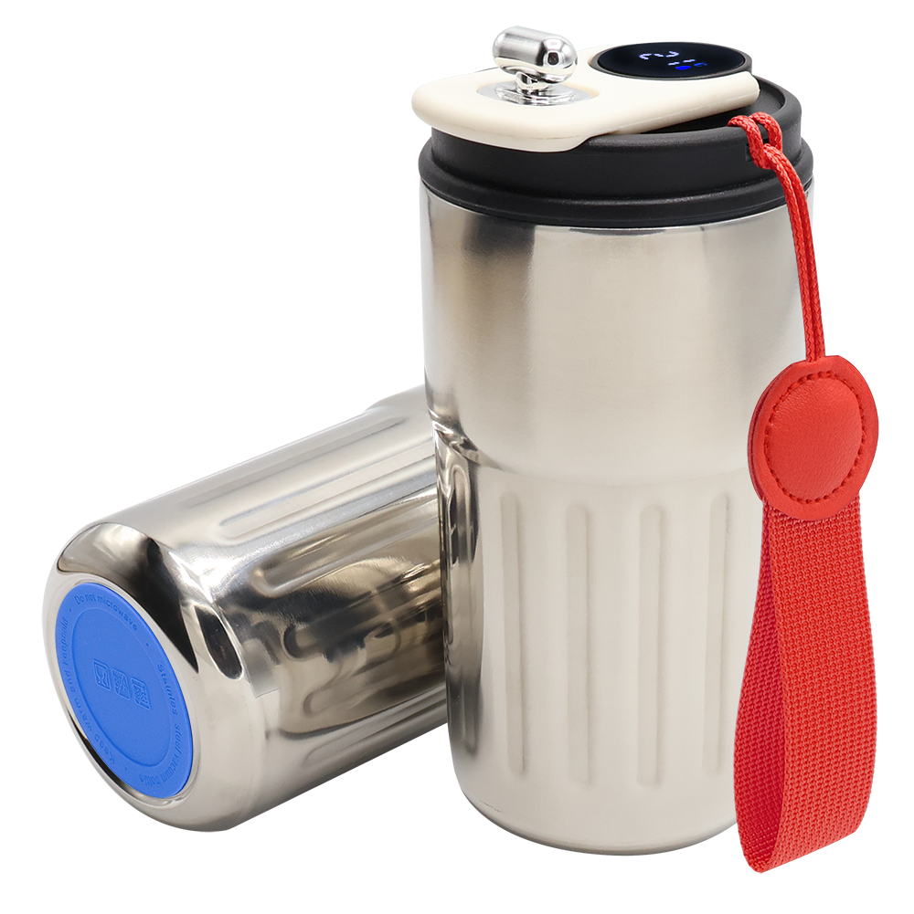 Термокружка Ashly с дисплеем выполнена из пищевой нержавеющей стали. Объем 400 мл. Имеет двойные стенки с вакуумной изоляцией, крышка изготовлена из пищевого безопасного для человека пластика. Особенностью термокружки Ashly является наличие сенсорного индикатора температуры, расположенного в крышке. Чтобы узнать температуру напитка внутри кружки, достаточно прикоснуться к поверхности крышки. Помимо этого, термокружка Ashly очень удобна в использовании. Просто нажмите на клапан в направлении дисплея, чтобы открыть верхнюю часть крышки и насладиться любимым напитком. Элегантный дизайн, удобство и функциональность - вот что делает термокружку Ashly незаменимым аксессуаром для всех любителей горячих и холодных напитков. В комплекте: термокружка, шнурок, силиконовая накладка и фирменная коробка. Надежная крышка - качественные и безопасные материалы - двойные стенки из нержавеющей стали - сенсорный ЖК-дисплей - информация о температуре жидкости -отличные теплоизоляционные свойства - эргономичный дизайн - удобная форма! Термокружка подходит для большинства автомобильных подстаканников.Цвет накладки, максимально близкий к пантону 108C- Виды нанесений: Гравировка-А2 (оптоволоконный лазер), Гравировка Круговая (оптоволоконный лазер), УФ-печать А2, Термотрансфер DTF, УФ - DTF, УФ-Лак, УФ-Цвет+Лак