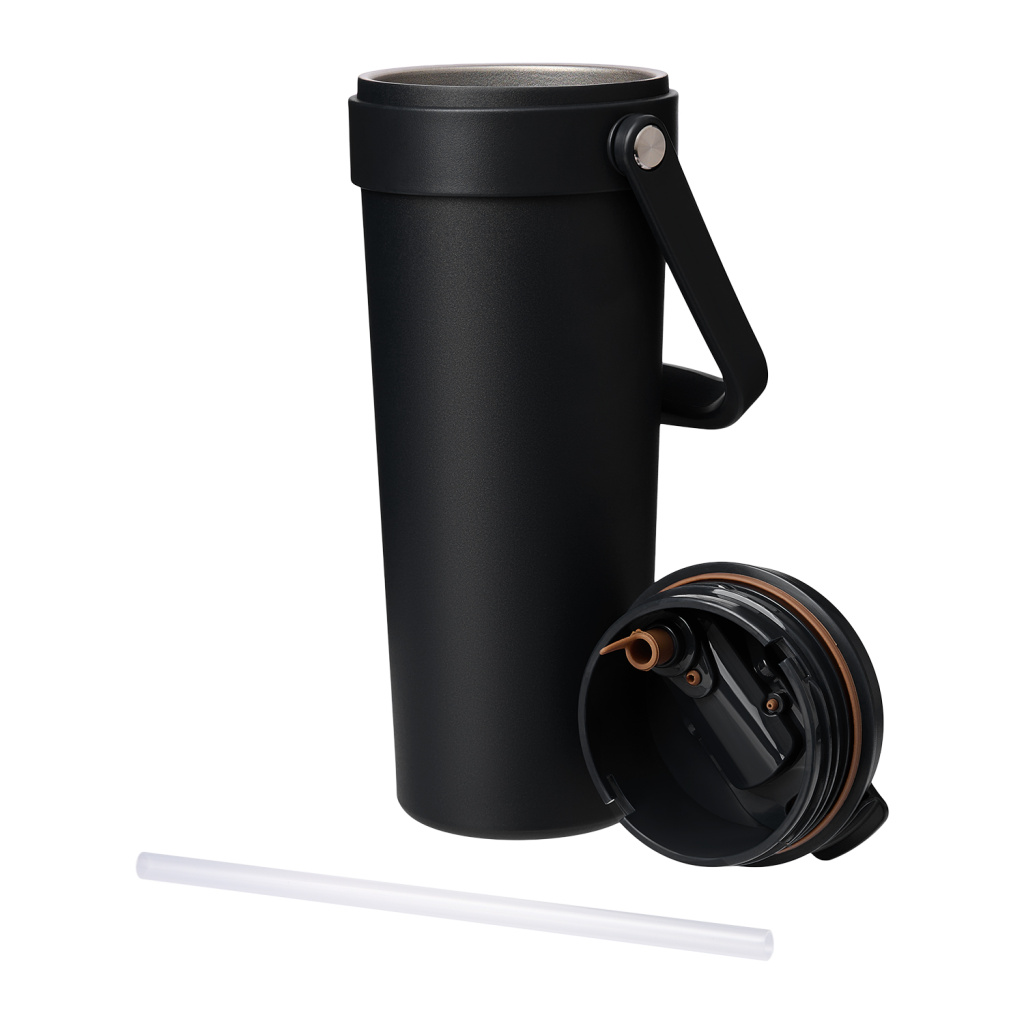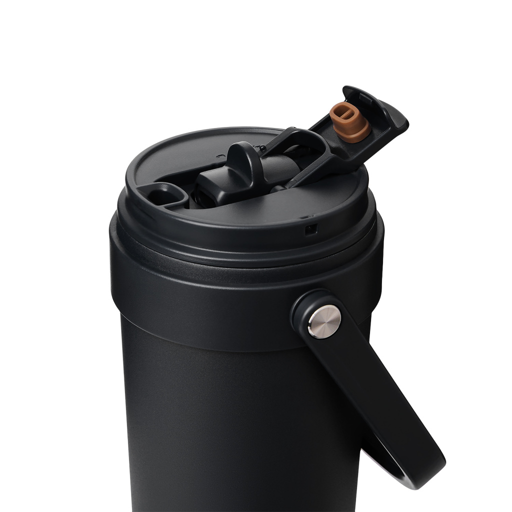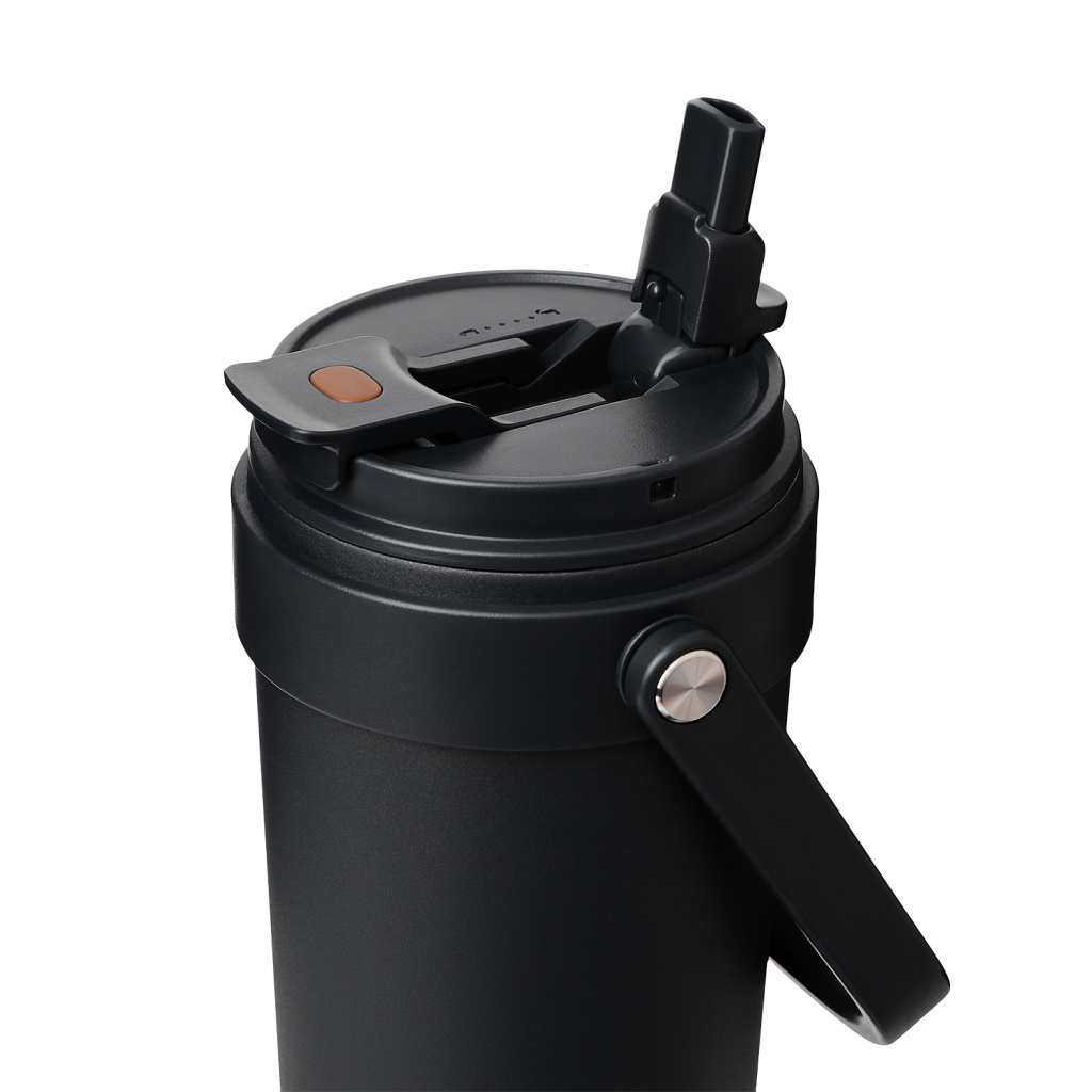 Крышка оснащена трубочкой для холодных напитков и классическим клапаном для горячих.  Функциональная завинчивающаяся крышка с удобной ручкой и надежным клапаном с силиконовым уплотнителем обеспечивает безопасность в использовании.