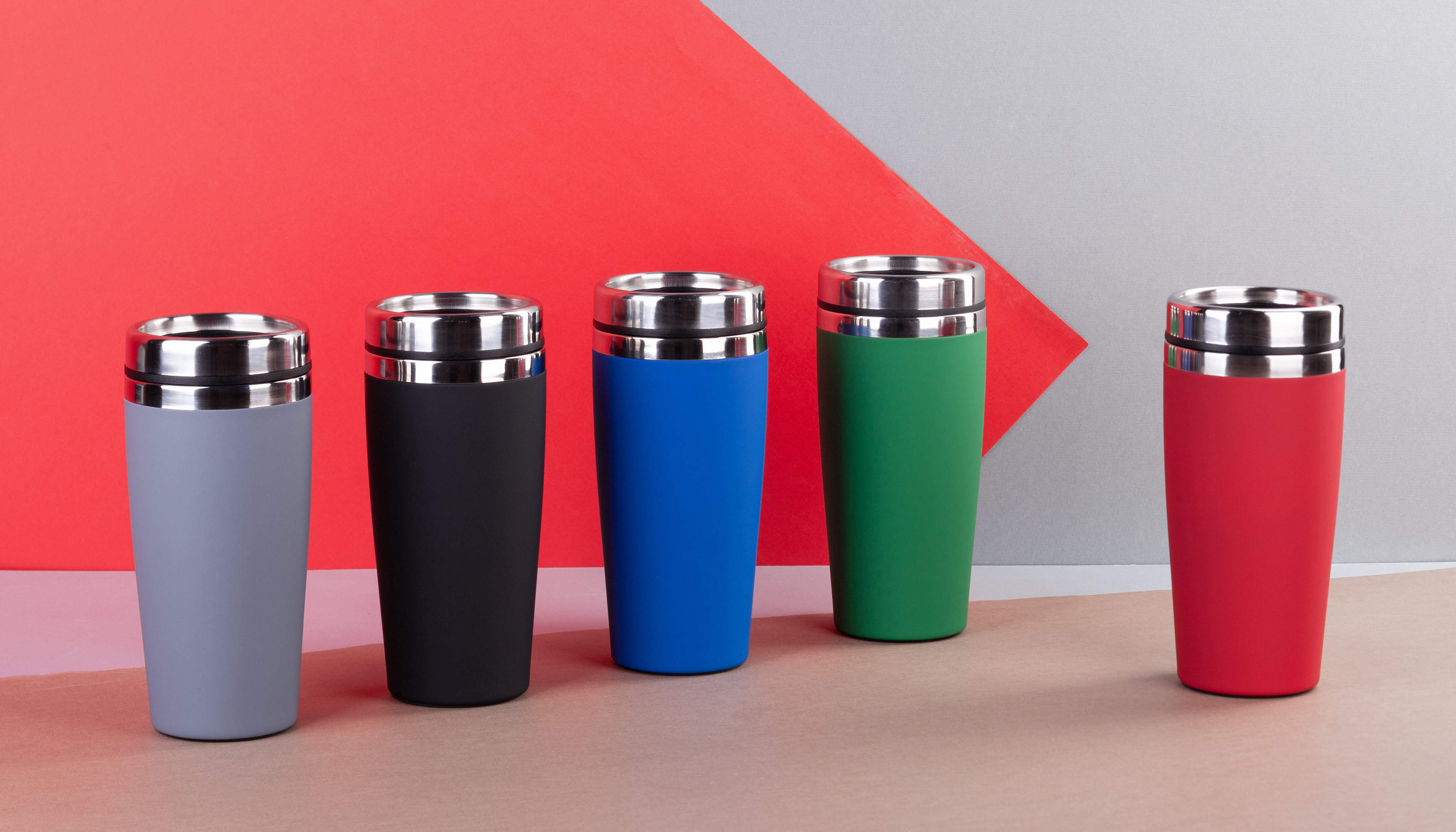 Внешняя стенка термостакана изготовлена из нержавеющей стали с уникальным прорезиненным напылением soft-touch, а внутренняя стенка выполнена из высококачественной пищевой, нержавеющей стали. Корпус изделия персонализируется по окружности встык. У термостакана отвинчивающаяся крышка.