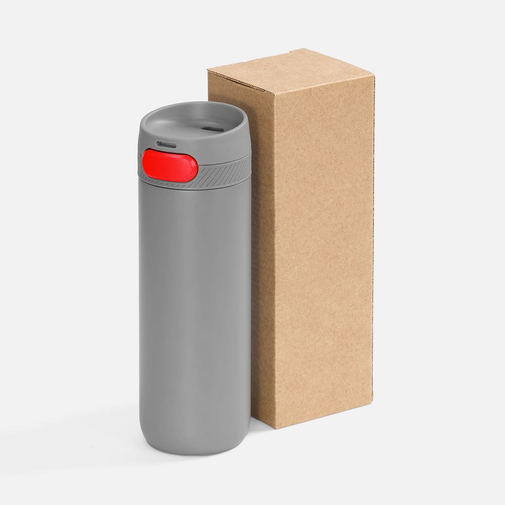 Термостакан X1 с цветной кнопкой, серый с красным