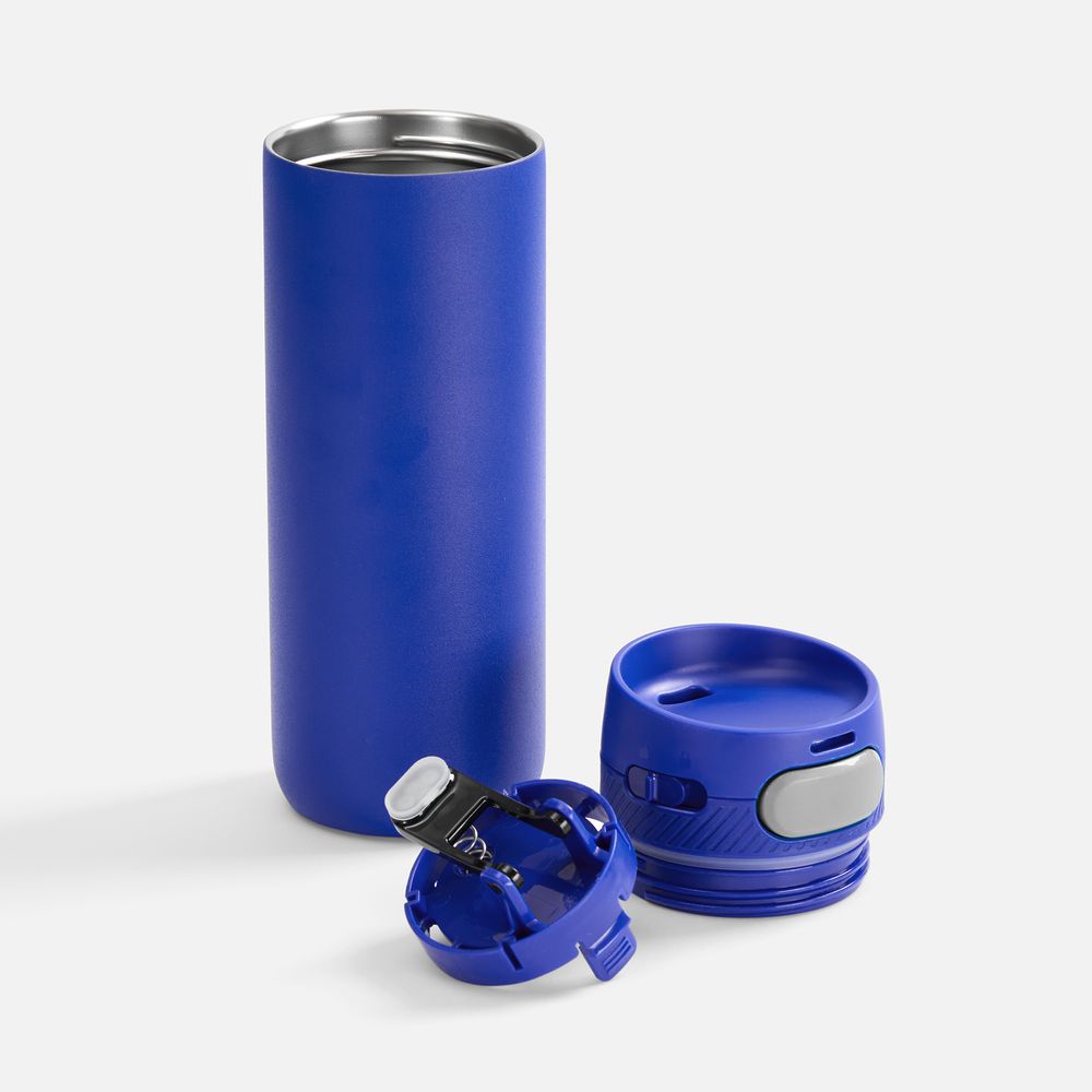 Термостакан X1 с цветной кнопкой, синий с серым
