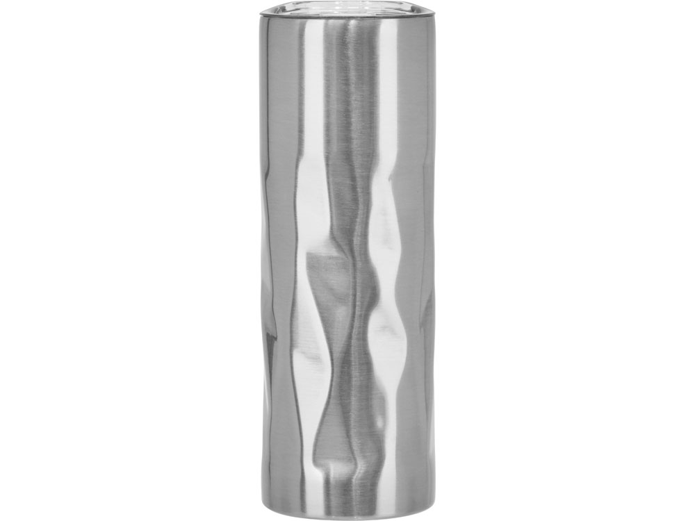Вакуумная термокружка с двойными стенками из пищевой нержавеющей стали в необычном дизайне. Съемная крышка-непроливайка со слайдером. Поставляется в крафтовом тубусе.