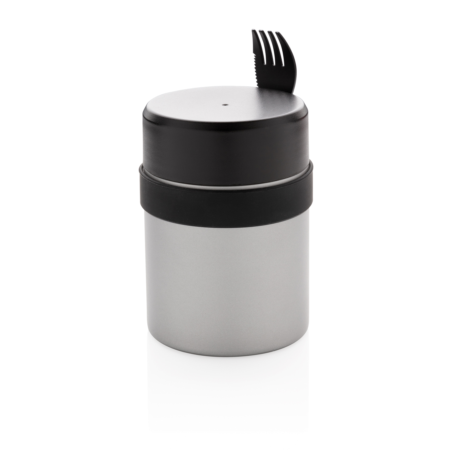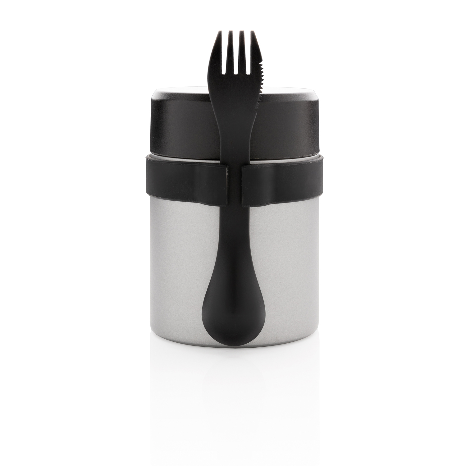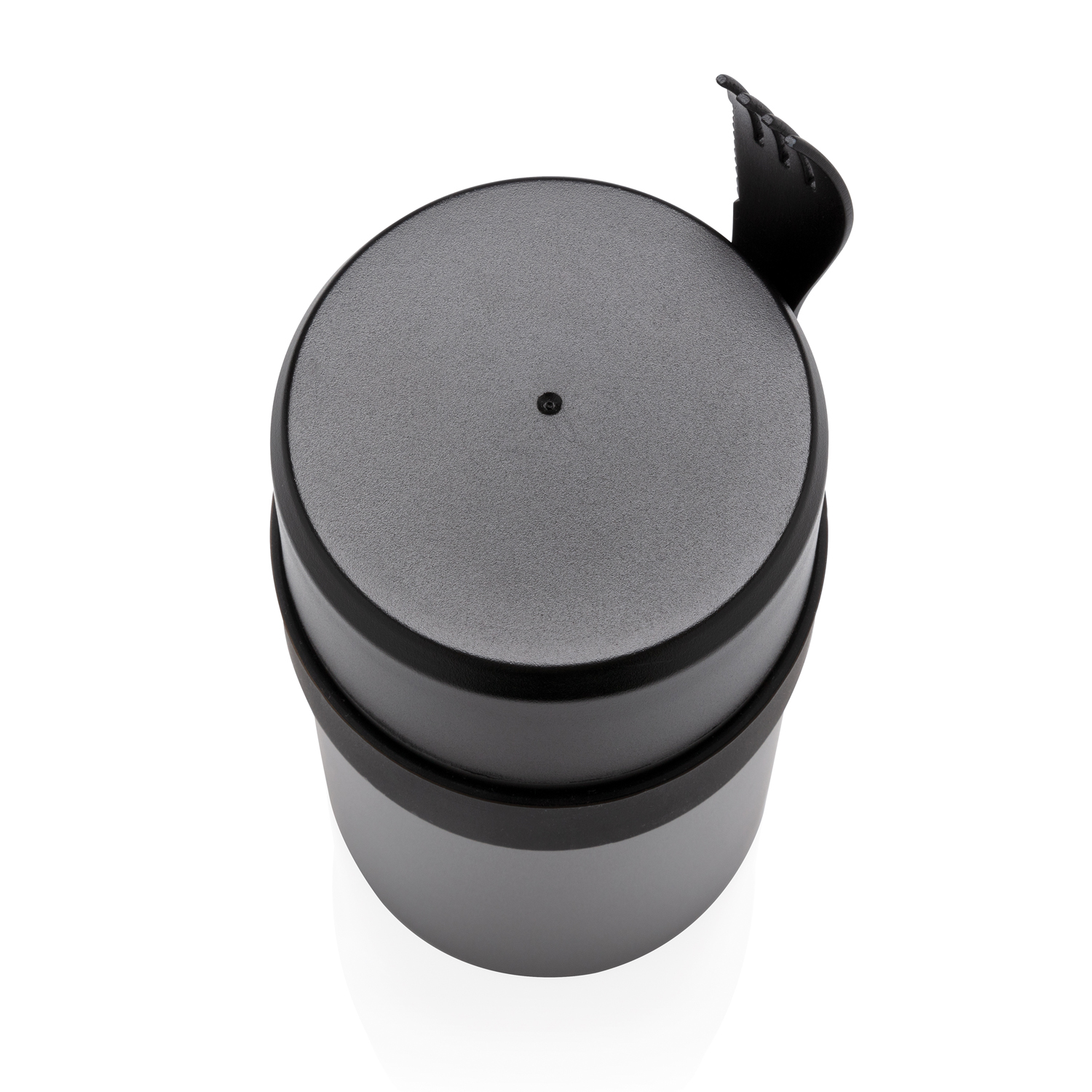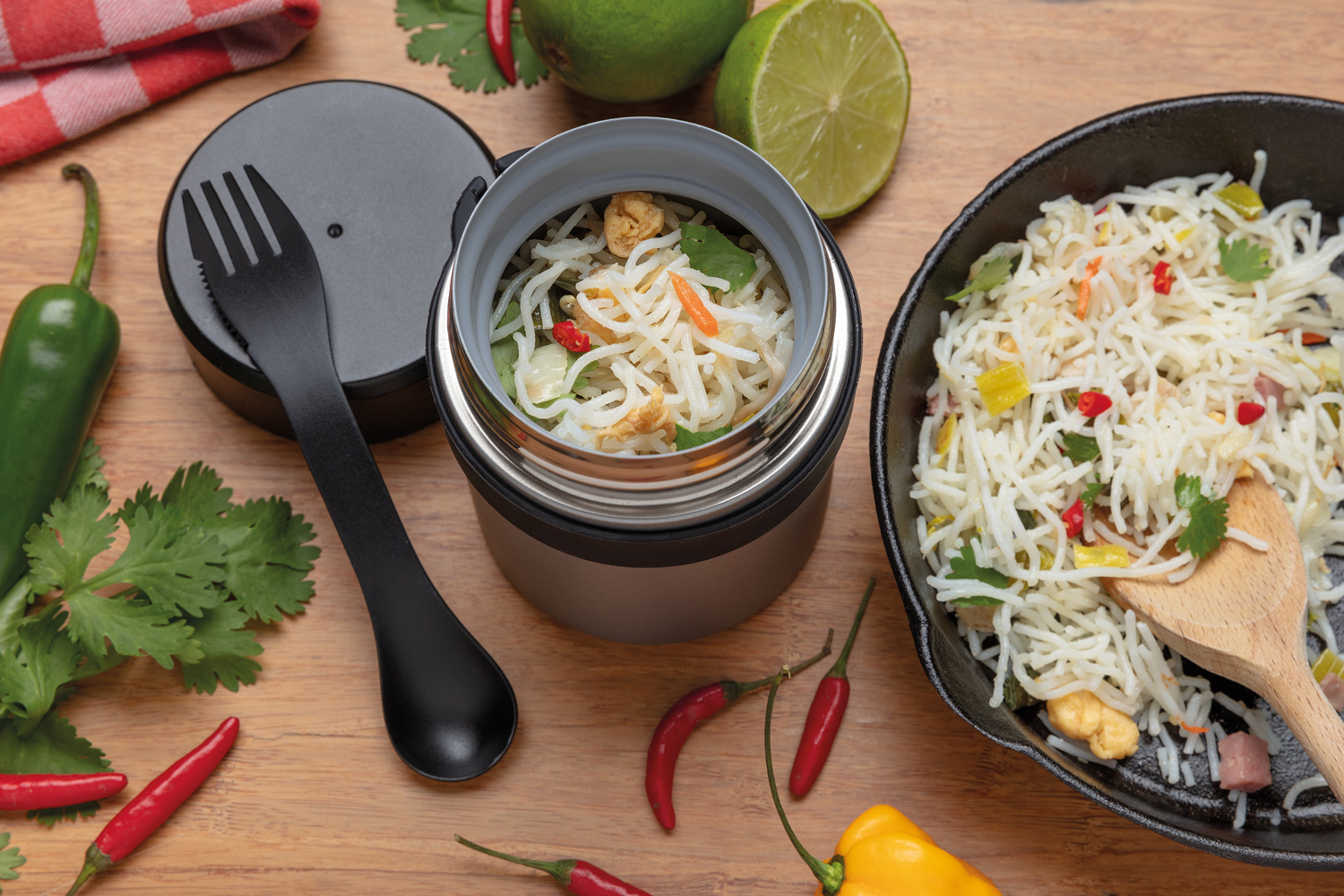 Наслаждайтесь свежей едой без посторонних привкусов и запахов с новым вакуумным термосом для еды Bogota с керамическим напылением. Он сохранит температуру горячих блюд до 5 часов, холодных — до 15 часов. На всю внутреннюю стенку термоса нанесено керамическое покрытие, чтобы вы могли наслаждаться едой без металлического привкуса. Крышка с защитой от протекания. В комплекте со столовым прибором вилка-ложка-нож 3 в 1. Объем: 400 мл. Зарегистрированный дизайн®