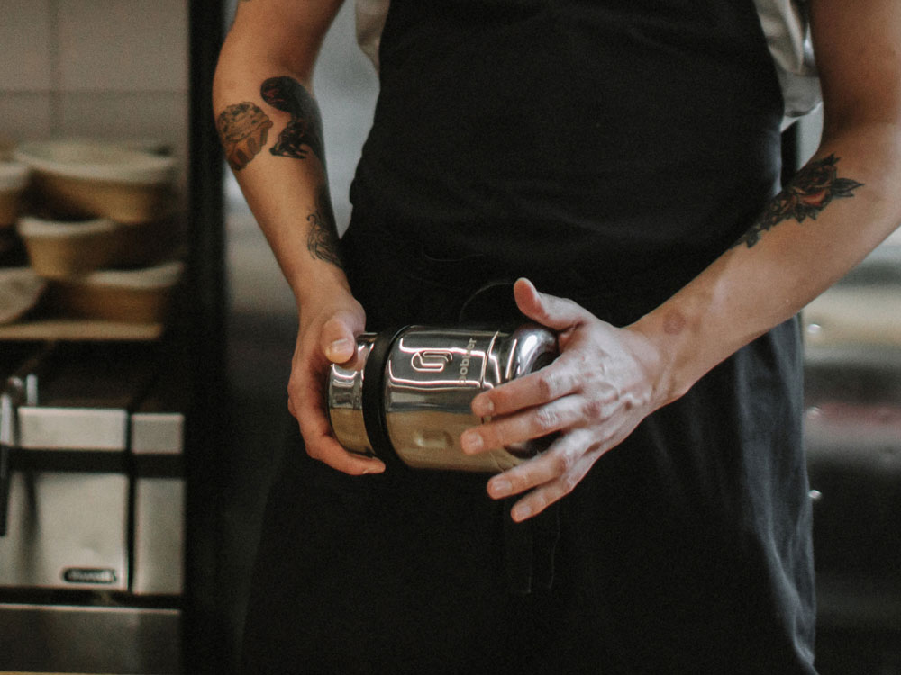 Jerrycan сделан из нержавеющей стали 18/8. Отдельные элементы пробки и крышки-чашки выполнены из пищевого силикона и безопасного пластика BPA-free. На глухой пробке термоса сделано металлическое основание, благодаря чему еда не соприкасается с пластиком, а внутри колбы не накапливаются запахи. Силиконовые кольца на крышке обеспечивают 100% герметичность.