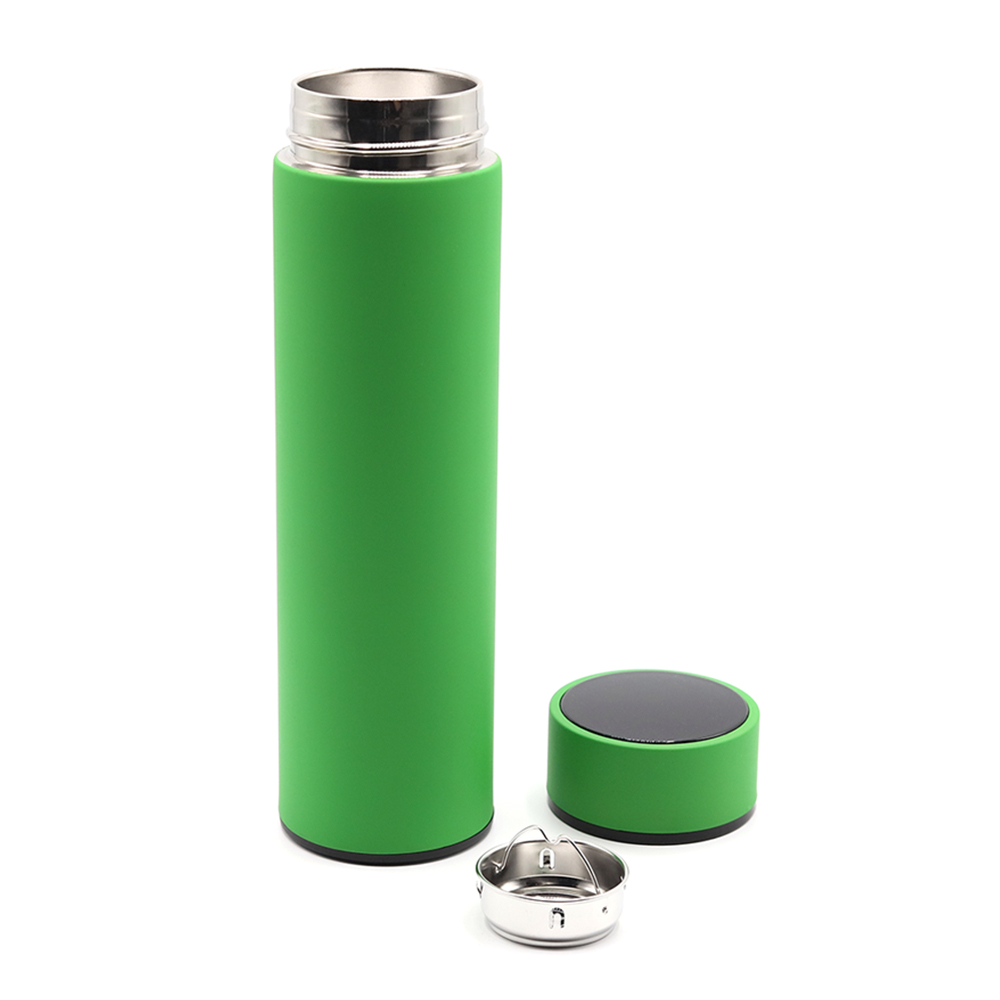 Нужный подарок с современными возможностями. Данный термос обладает сенсорным дисплеем для отображения температуры содержимого. Батарея рассчитана на 80000 касаний. Внутри встроено ситечко для чая и других напитков. Корпус обладает приятной на ощупь soft touch поверхностью пантон максимально близкий к 355С- Виды нанесений: УФ-печать А2, Круговая УФ-печать, Гравировка А2, Гравировка круговая, УФ - DTF, УФ-Лак, УФ-Цвет+Лак