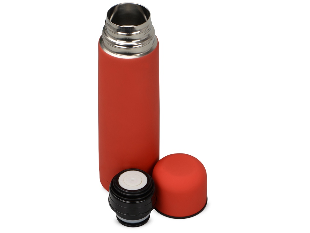Универсальный термос с мягким прорезиненным покрытием софт-тач. Удобно и приятно держать в руке. Благодаря вакуумной изоляции и двойным стенкам сохраняет напитки горячими 24 часа. Герметичный клапан открывается и закрывается по легкому нажатию. Термос поставляется в дорожном чехле из искусственной кожи. -