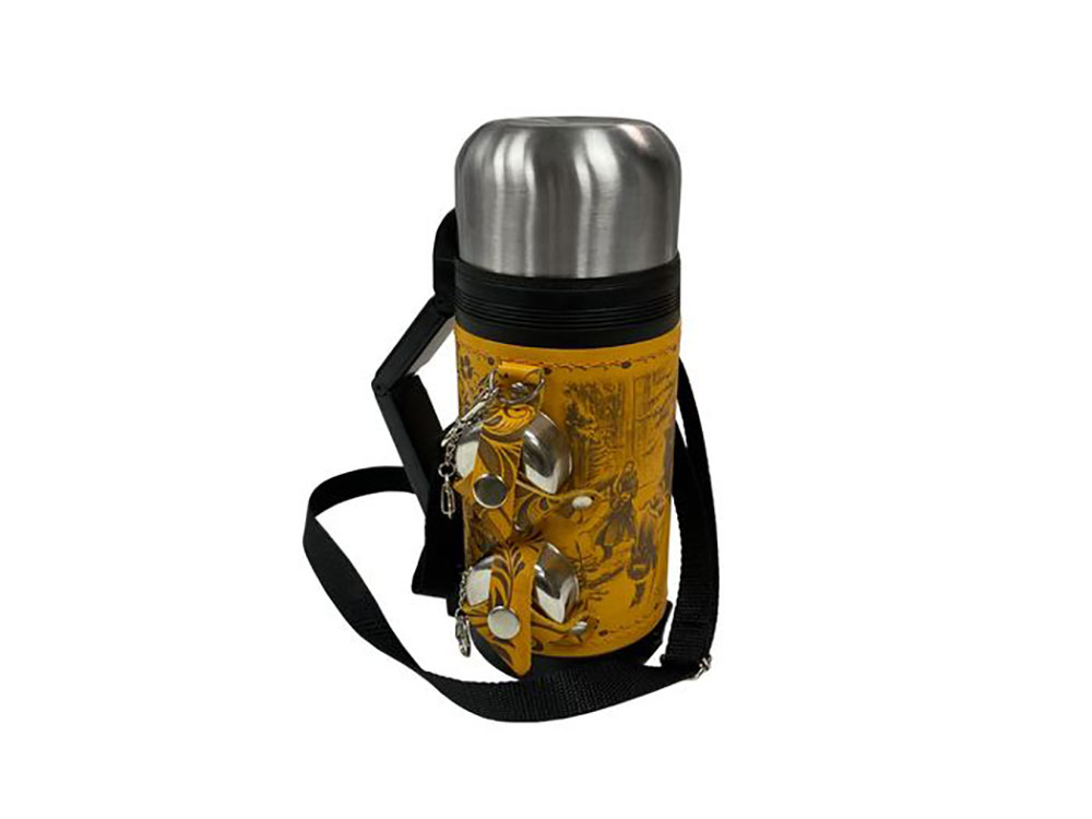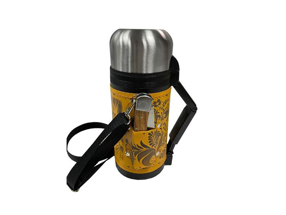 - Термос 1,2л (нерж.сталь) с металлической колбой в чехле из натуральной кожи с художественным выжиганием - 1 шт.