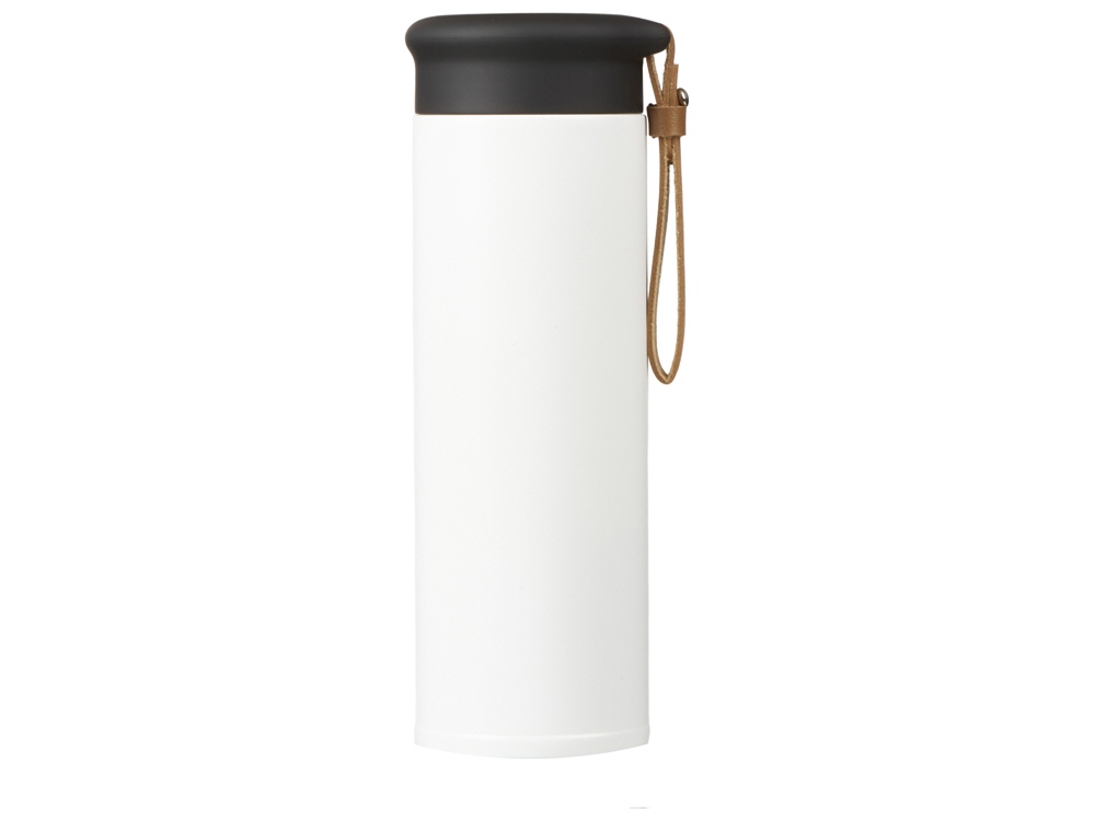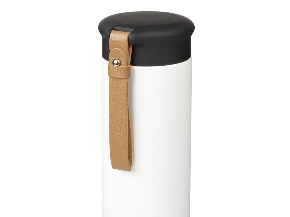 Термос герметично завинчивается на крышку, оснащенную съемным ремешком из качественной ПУ кожи. Крышка имеет прорезиненное покрытие, что создает интересное сочетание текстур в рамках одной модели. Корпус имеет элегантную рельефную поверхность с антискользящим эффектом.